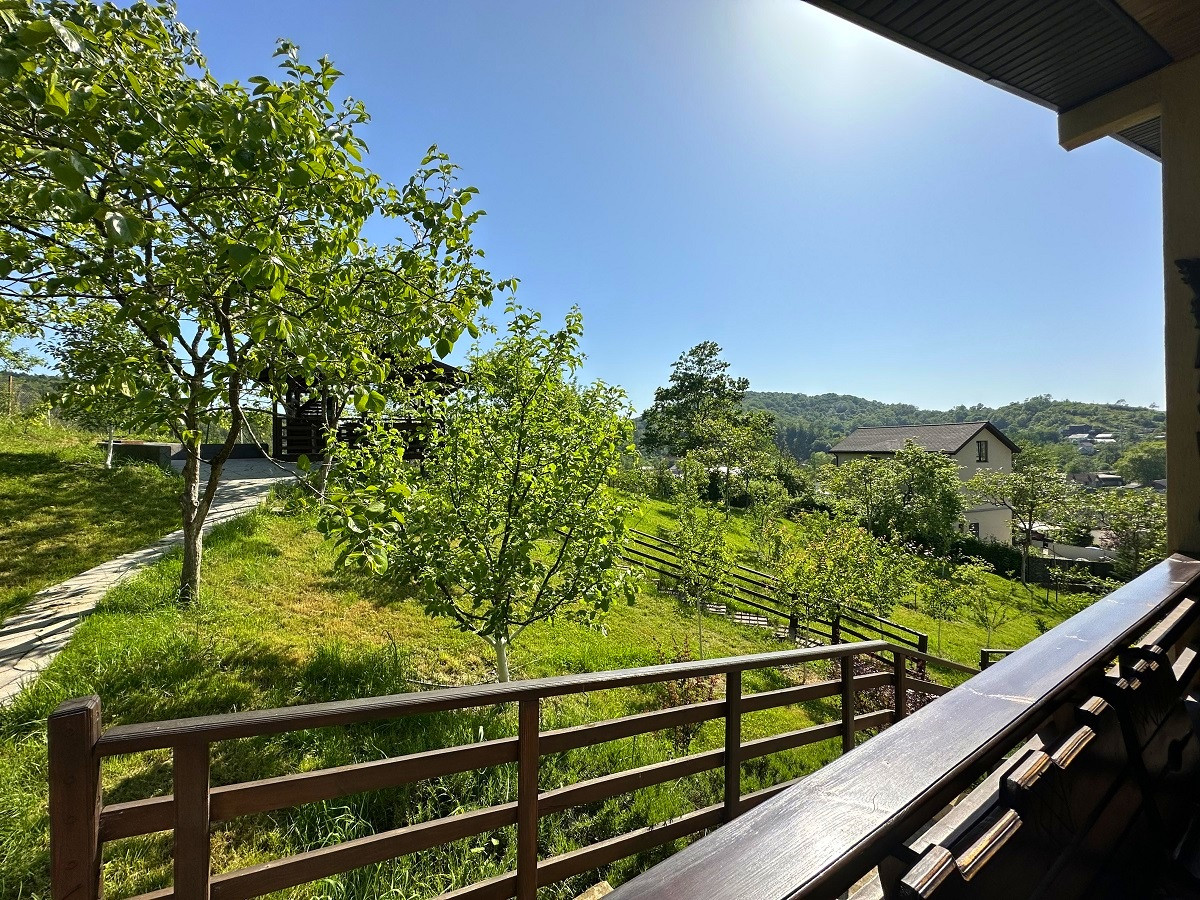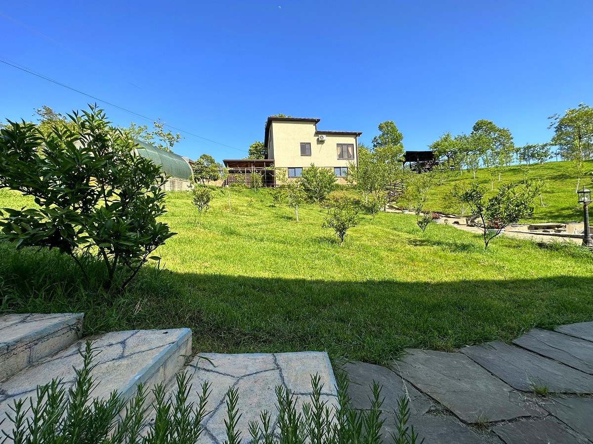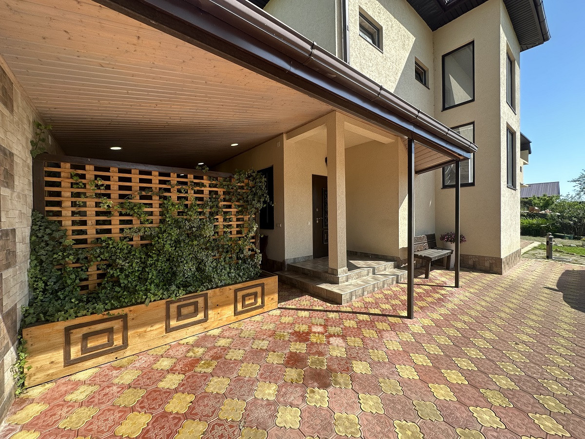 Отличным дополнением, подчеркивающим красоту этого домовладения , служит ландшафтный дизайн придомовой территории, выполненный в лучших традициях европейского стиля, для которого характерна простота и удобство. Множество плодовых и декоративных деревьев и кустарников, овощная теплица, вольер для собаки, просторная придомовая парковка и огромная свободная территория для воплощения Ваших идей и предпочтений.