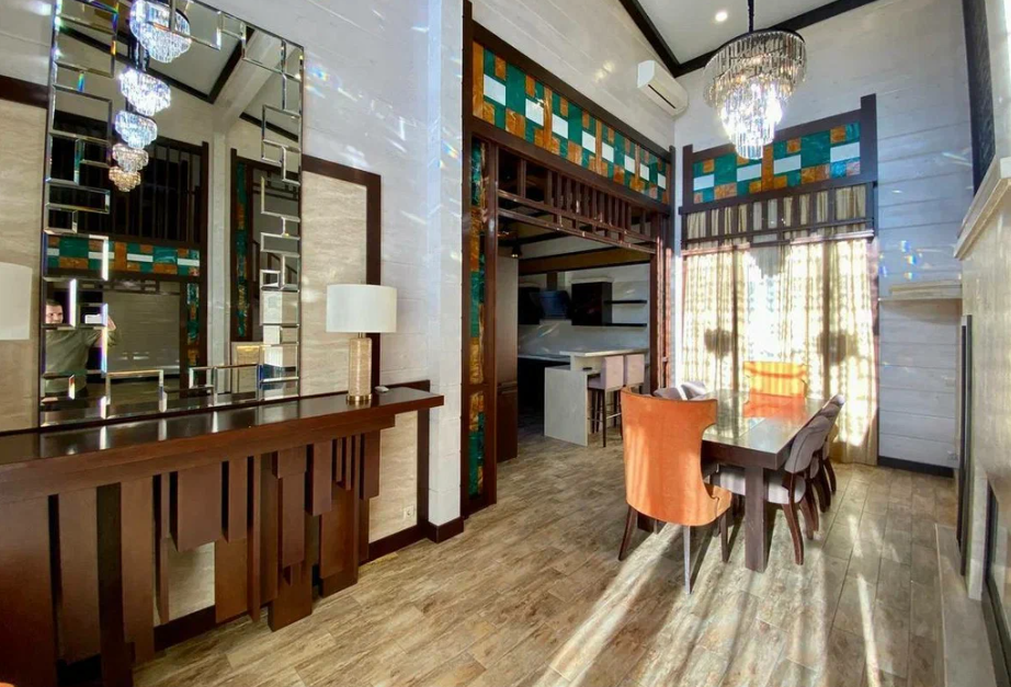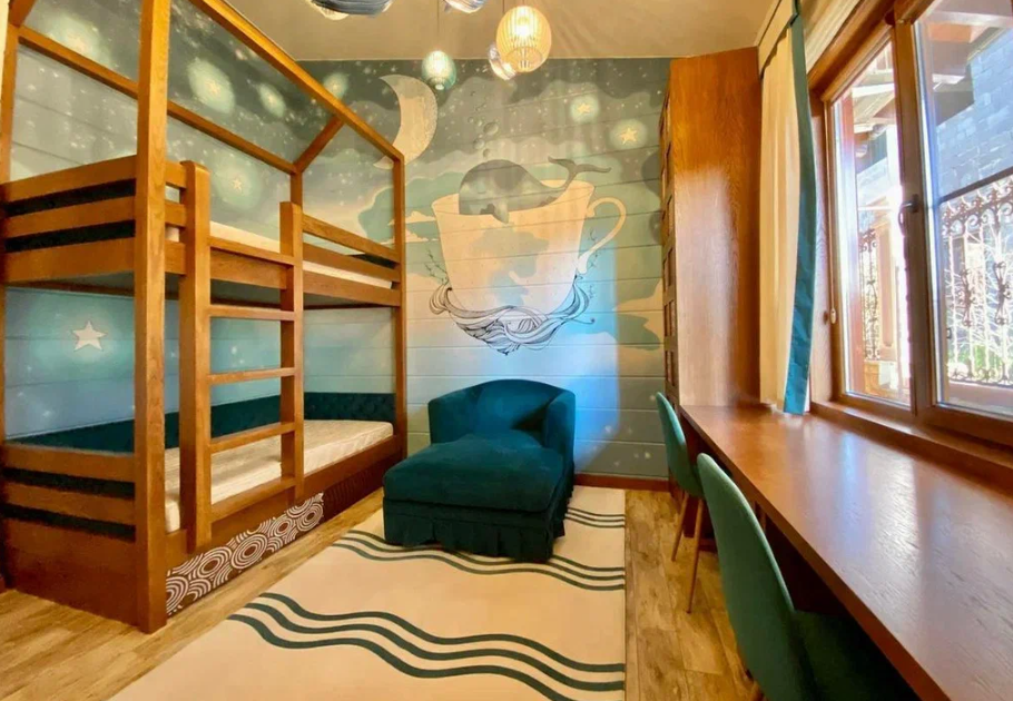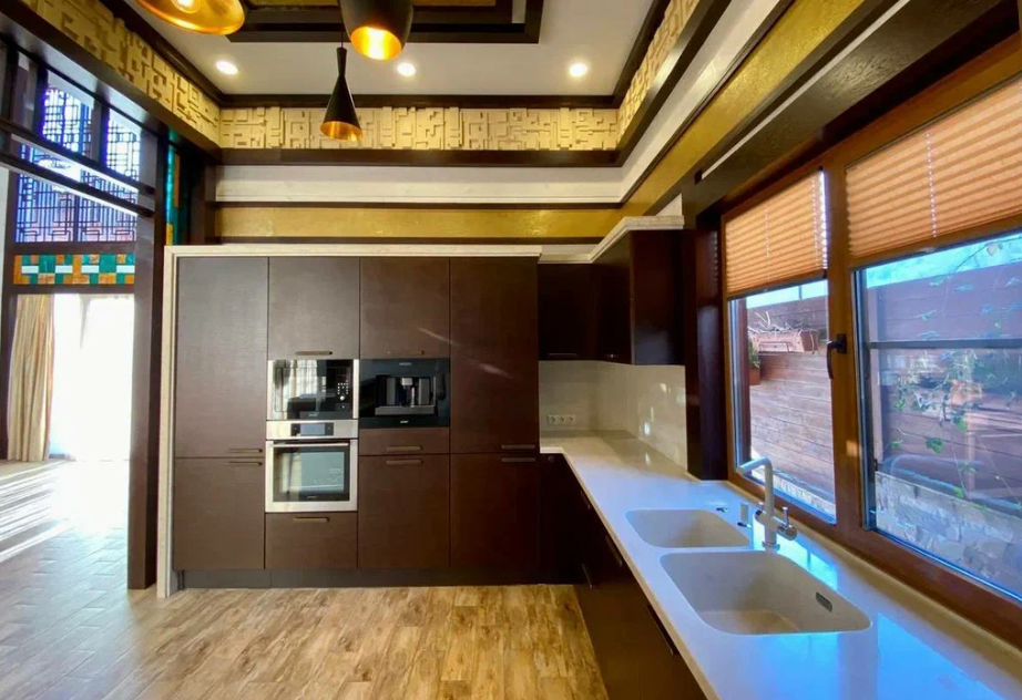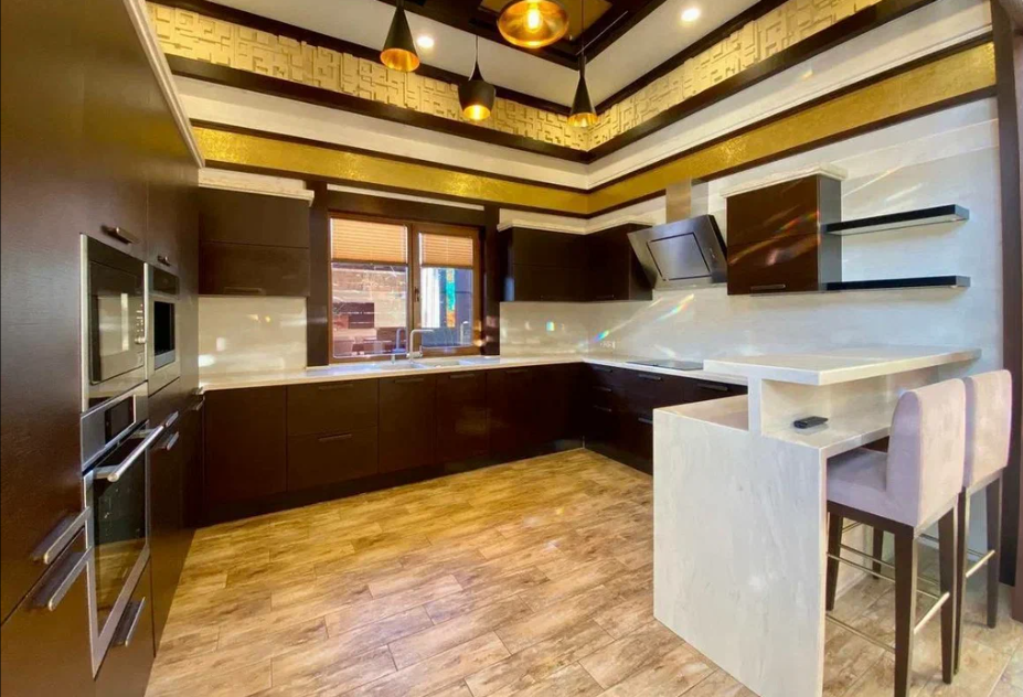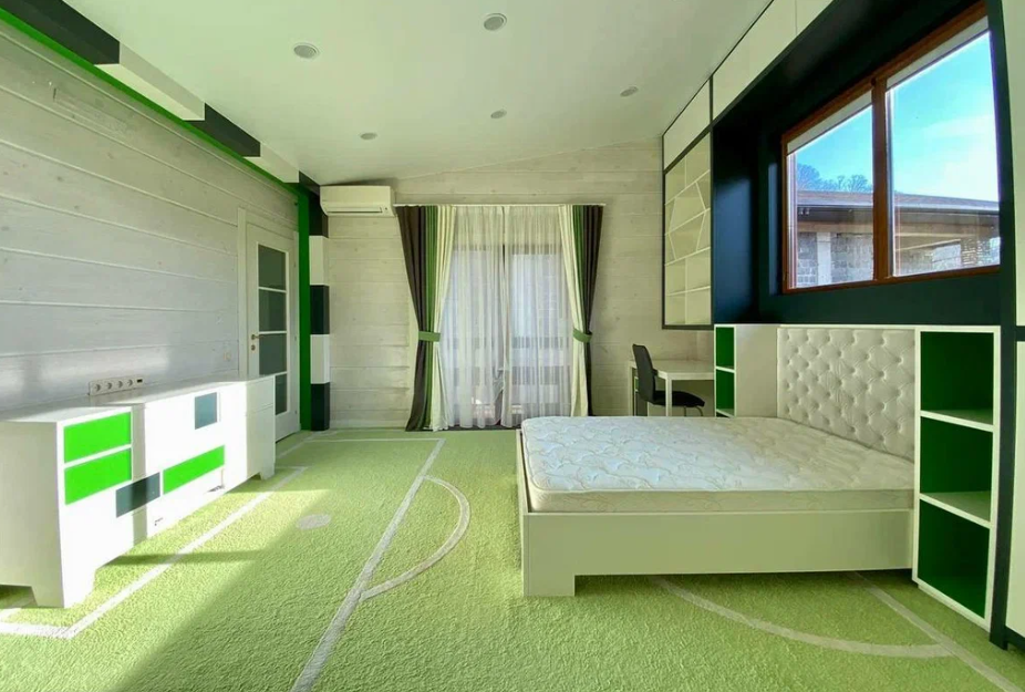 Продаю дом в Сочи, район Мацеста, выполненный из бруса с видом с видом на горы. Дом хорошо подойдет для большой семьи. Общая площадь - 400 м2.  На придомовой территории в 10 соток 2 парковочных места и плюс гараж в который войдет два – три автомобиля. Бассейн с подогревом и также подогрев пола возле бассейна. Возле бассейна расположена большая детская площадка, а также спортивная зона и место, где можно загорать лежа на шезлонгах. На улице имеется летняя кухня с мангальной зоной и тандыром. На 1 этаже расположена прихожая, мастер спальня (свой су, гардеробная, балкон), две детских комнаты, тех. помещение + гардеробная. Также расположена сауна с душем. Просторная гостиная с высокими потолками (самое высокое место 6 м. 25 см.), с камином за которым расположена столовая кухонная зона.