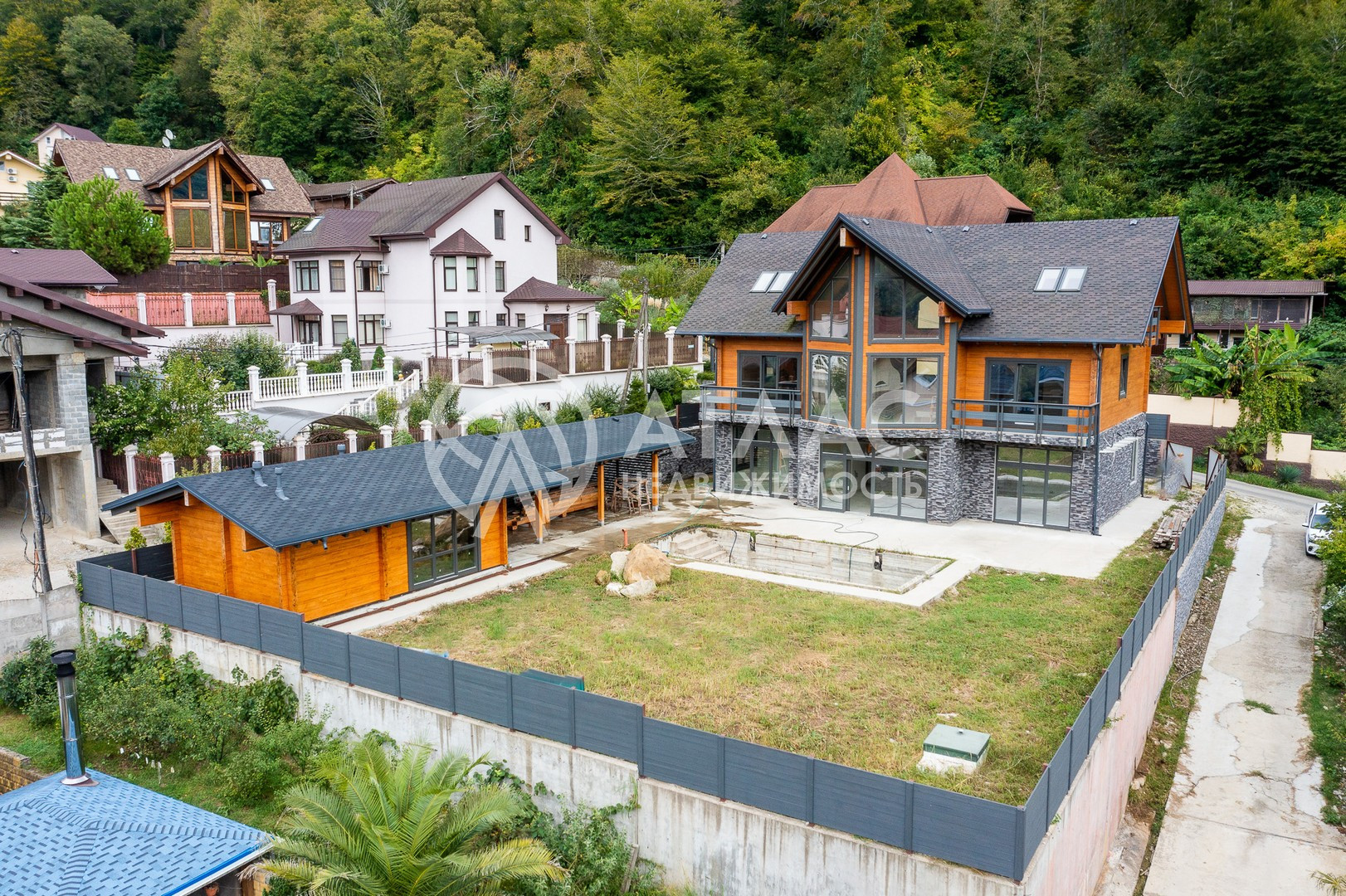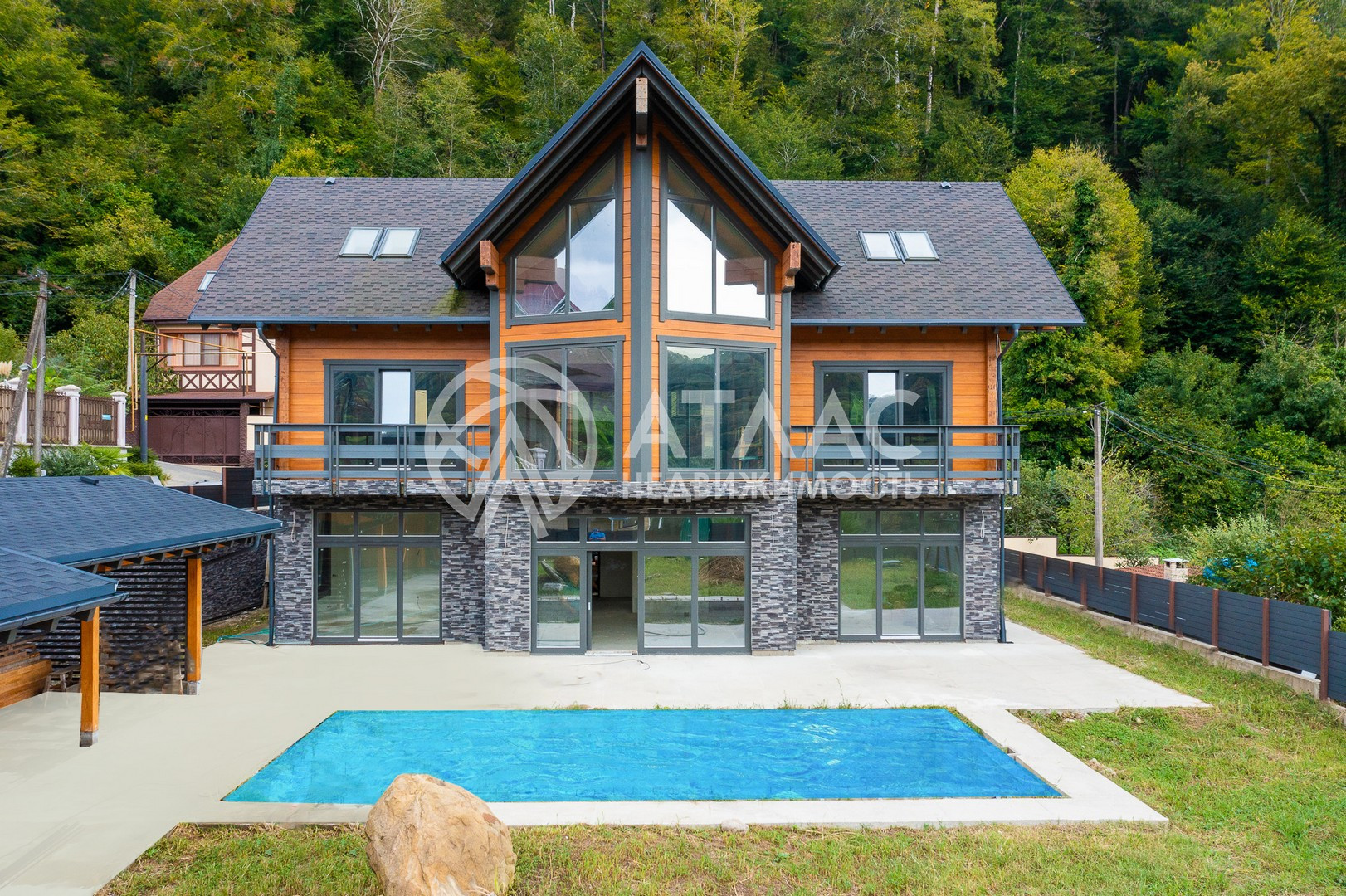 Отдельный плюс – стильное архитектурное решение, дополненное ландшафтным дизайном прилегающей к дому территории. На участке расположен открытый бассейн, беседка, зона барбекю и летняя кухня. Предусмотрено парковочное пространство для автомобилей. Стоит побывать тут лично, чтобы оценить достоинства в самом полном объеме.