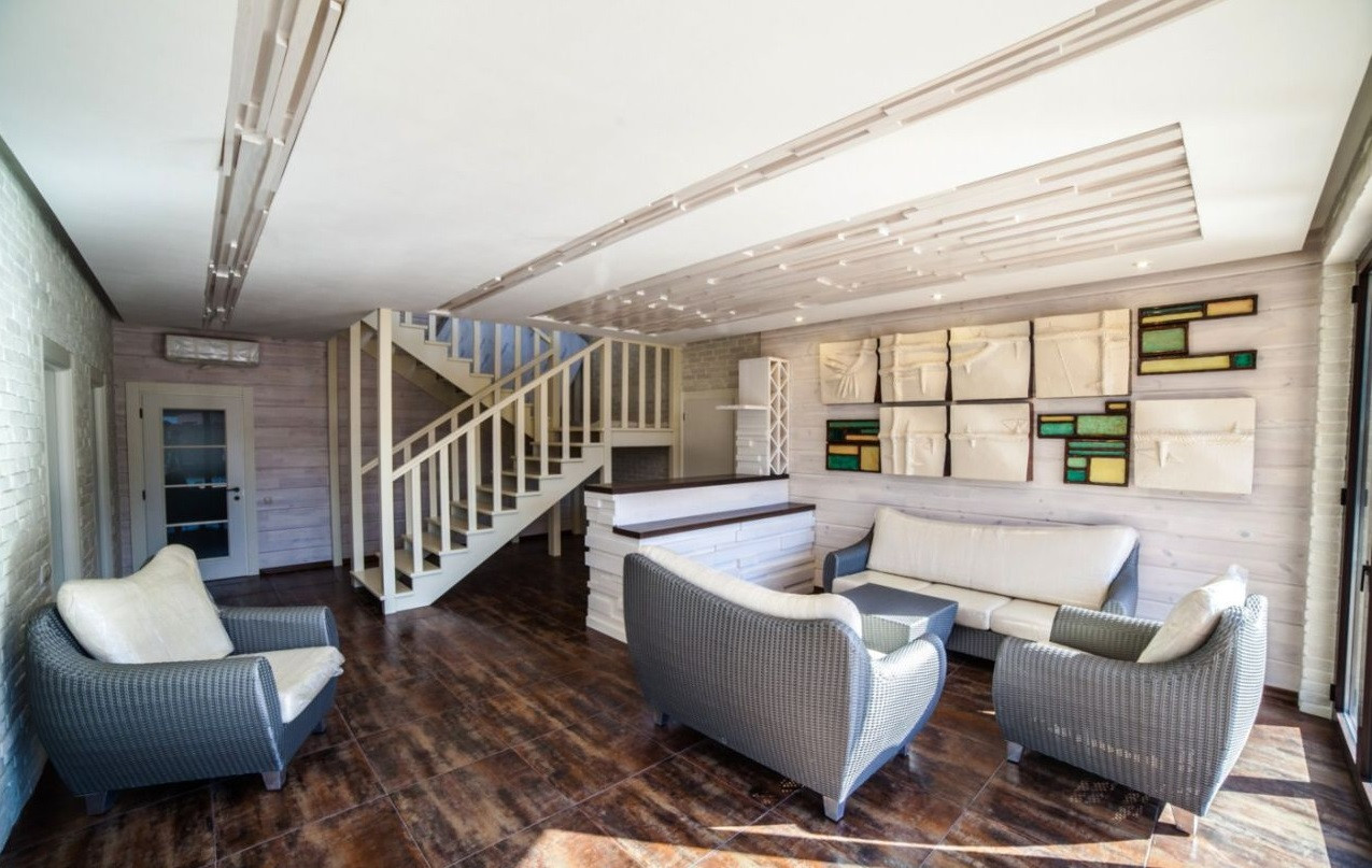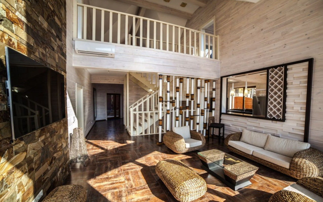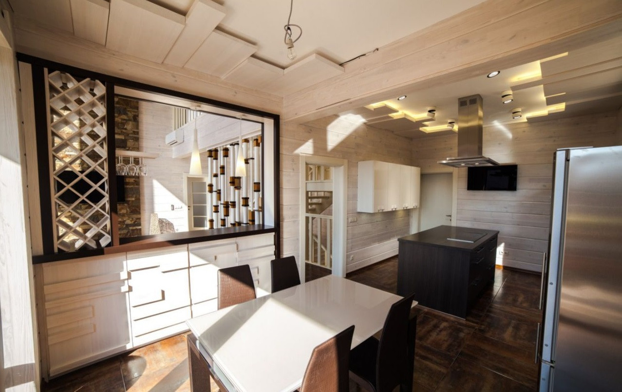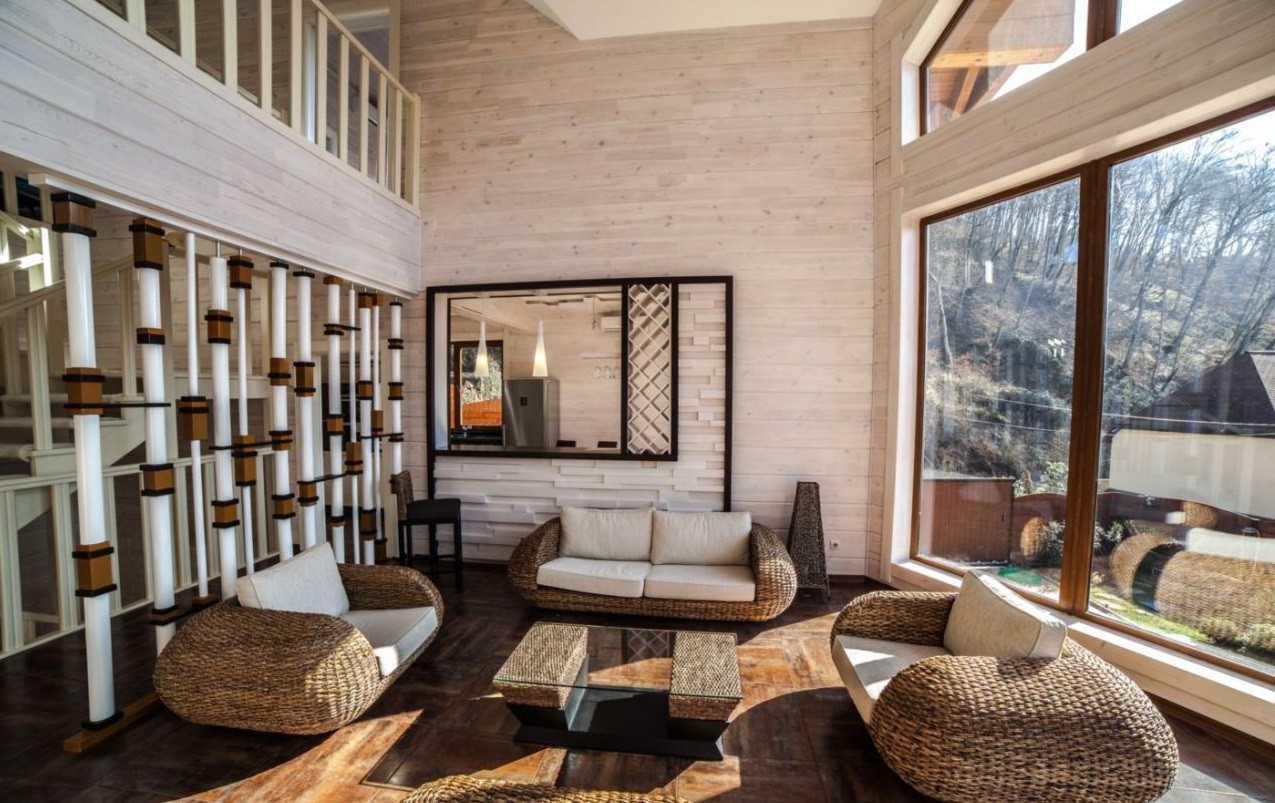 Домовладение общей площадью 320 кв. м. построено из клееного бруса Ангарской сосны, с авторским современным дизайном в силе минимализма.