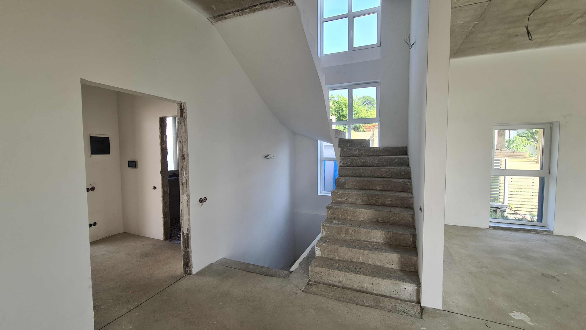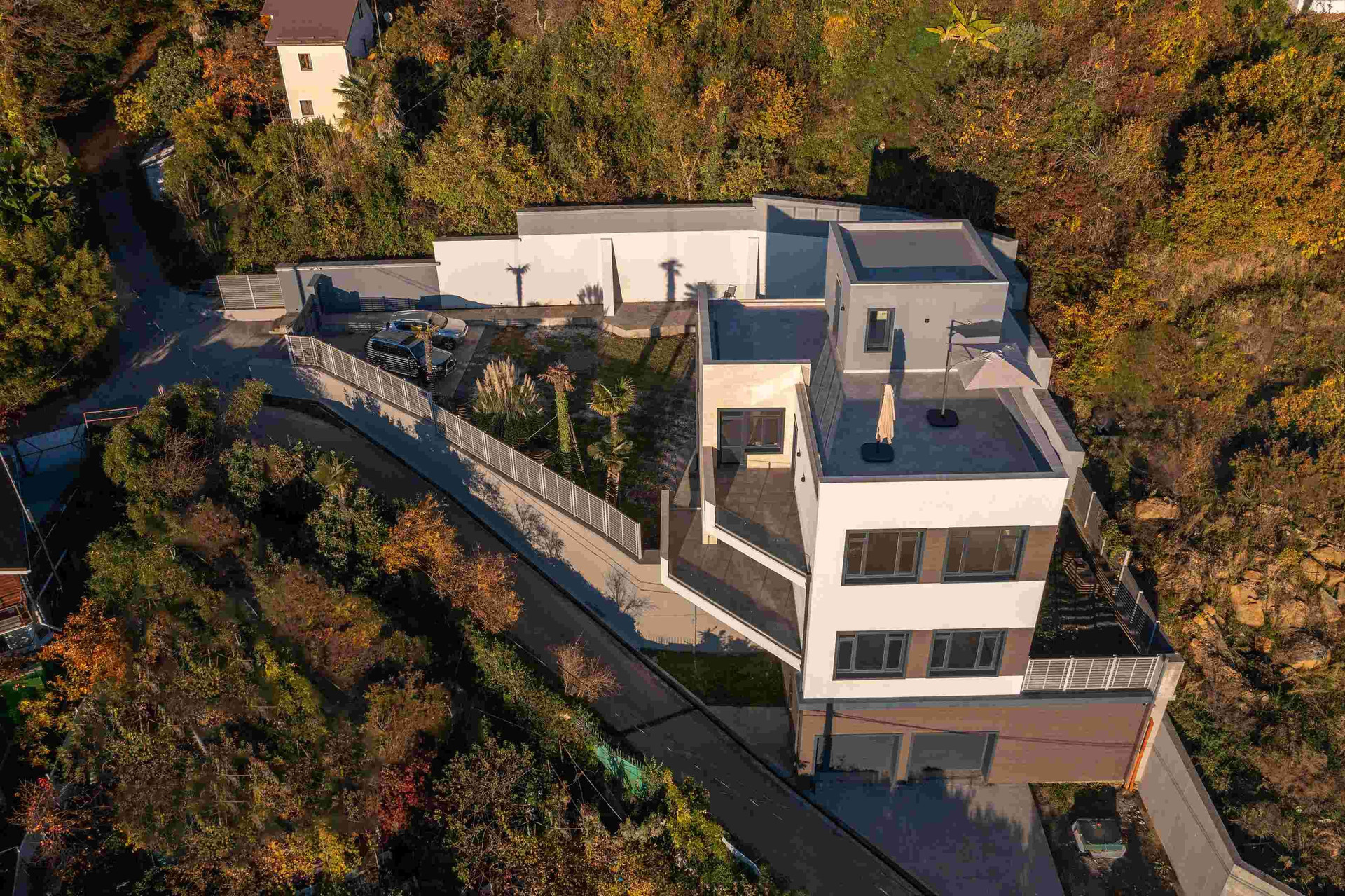 Общая площадь - 470 м2, в том числе: 5 спален, кухня - гостиная 60 м2 с высотой потолка 4.3 м, 4 ванных комнаты, гараж на 2 машины, пентхаус и эксплуатируемая кровля 110 м2, банный комплекс на цокольном этаже.