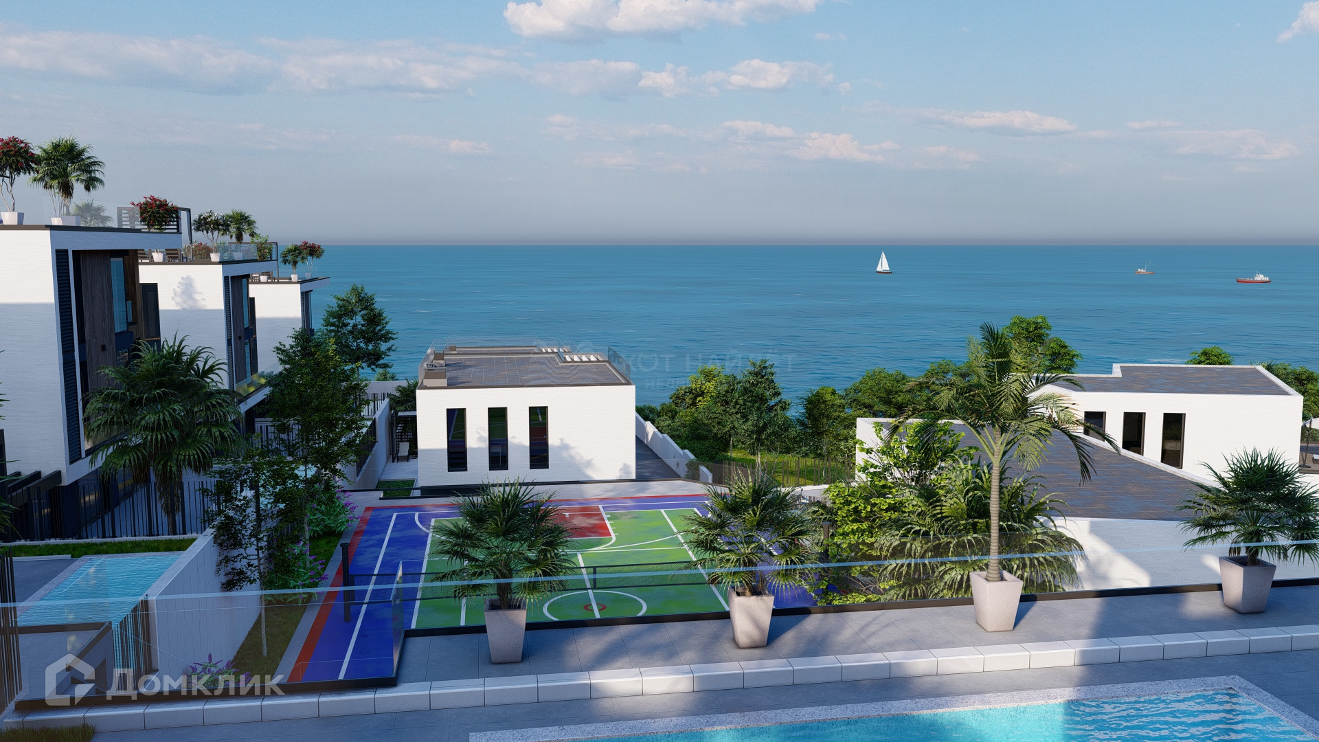 В Комплексе благоустроена открытая общая зона отдыха, гостевая парковка, закрытый спортивный комплекс и открытые зоны для занятия спортом, теннисный корт и множество прочих приятностей для собственников вилл.
