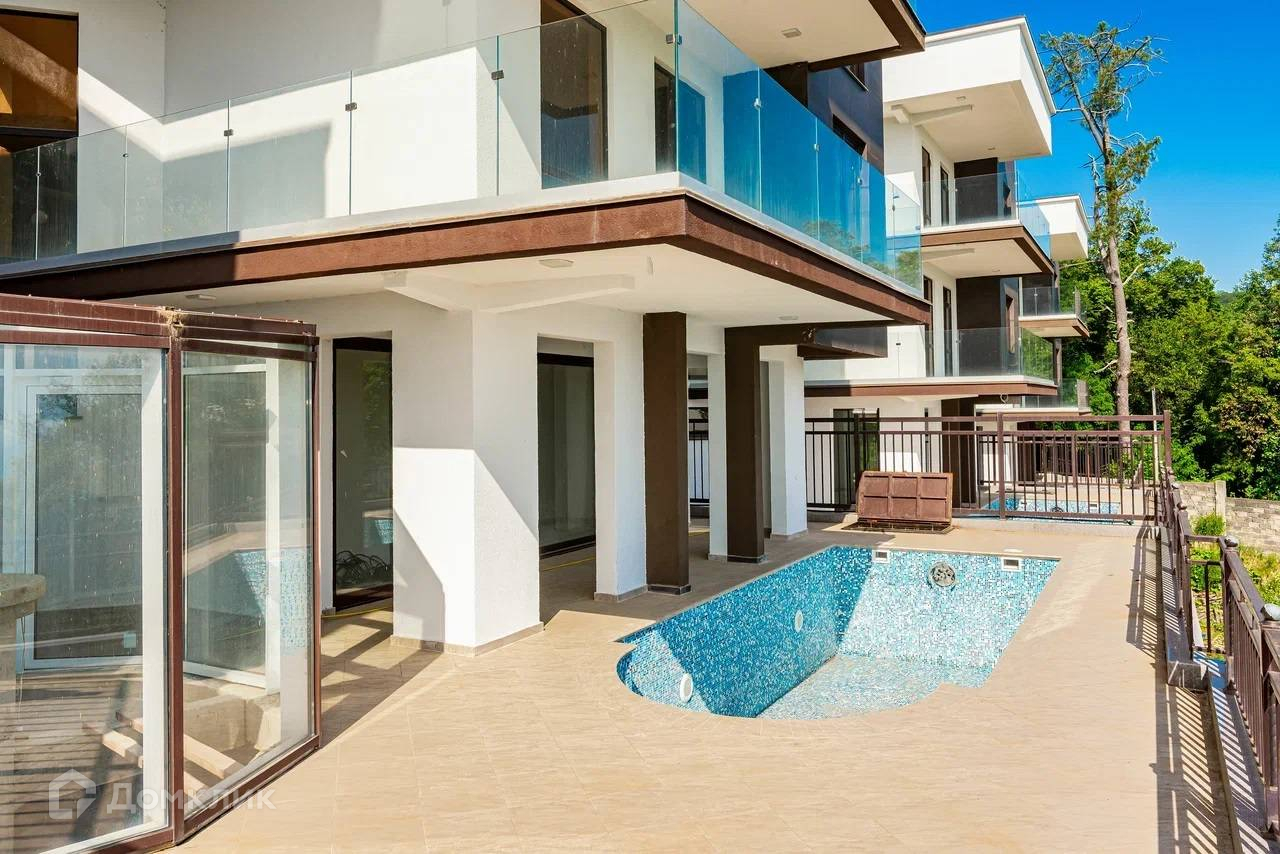 Лот № 169712. Продаю дом в коттеджном поселке  «Голд Вилладж»    Клубный комплекс «Голд Вилладж» расположен в уникальном месте  города-курорта Сочи,  на улице Светлая. в 2-х минутах от Новороссийского шоссе.     Идеальная транспортная доступность до всей инфраструктуры курорта : набережные, парки, рестораны, горнолыжные курорты. Удобно добираться ка до центра Сочи, так и до Адлера, Красной поляны.     Комплекс состоит из 5 вилл класса «премиум»     У виллы просторная территория со своим подогреваемым бассейном, зоной отдыха, парковкой, панорамными видами на море.4 этажа, 3 жилых и один цокольный с видом на море.     Почувствуйте всю прелесть проживания в окружении заповедника с пением птиц, да ещё в собственной вилле премиум класса.     Авторская архитектура и дизайн домов с использованием премиальных природных материалов в современном стиле: - отделка керамогранит - итальянские окна класса «люкс» - на территории плитка лучших заводов мира, - ограждение домов с использованием натурального камня, кованных элементов ограждения.     Для полноценного комфорта, в каждой мастер-спальне домов персональный балкон с видом на морской пейзаж.     Подогреваемый  бассейн под открытым небом, вас приятно порадует близость моря, наличие всех центральных коммуникаций, качество построенных домов, простор придомовой территории. И конечно же расположение в центральной части города-курорта. А так же свежий воздух, наличие более двухсот солнечных дней в году и прекрасное настроение с отменным здоровьем.   Адрес - ул. Светлая 44/4  Дом в современном стиле «Hi-tech». Площадь дома от 425 кв.м. 4 этажа  В доме : - 8 мастер-спальни - плюс 4 с/у -спорт зал -кухня гостиная -сауна -камин -просторные балконы -террасы - винный погреб - гостевые комнаты - гостевая зона отдыха - кальянная  Коммуникации  — вода, водоотведение, газ, электричество  На придомовой территории: - бассейн - парковка на 2 автомобиля - зона отдыха.  От Новороссийского ш - 2 минуты От моря 1,3 км       Для получения более подробной информации звоните по указанному телефону.Готов провести он-лайн показ6