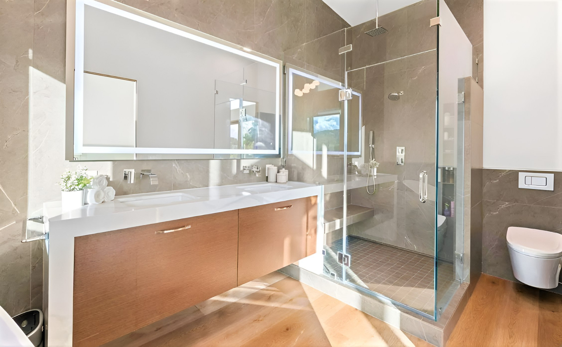 Современный стильный фасад дома, новый дизайнерский ремонт, премиальные материалы и большой ухоженный земельный участок - главные достоинства этого дома