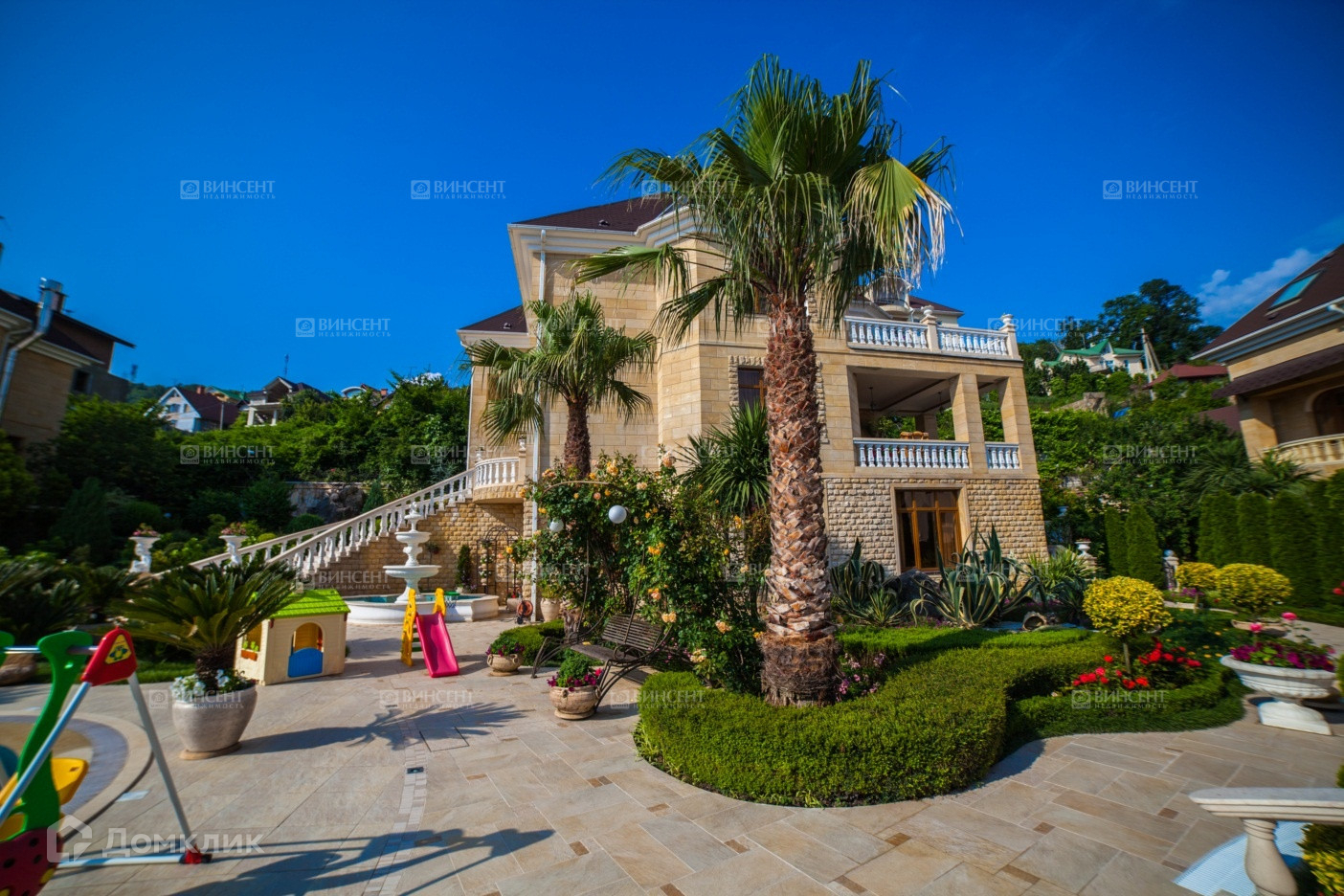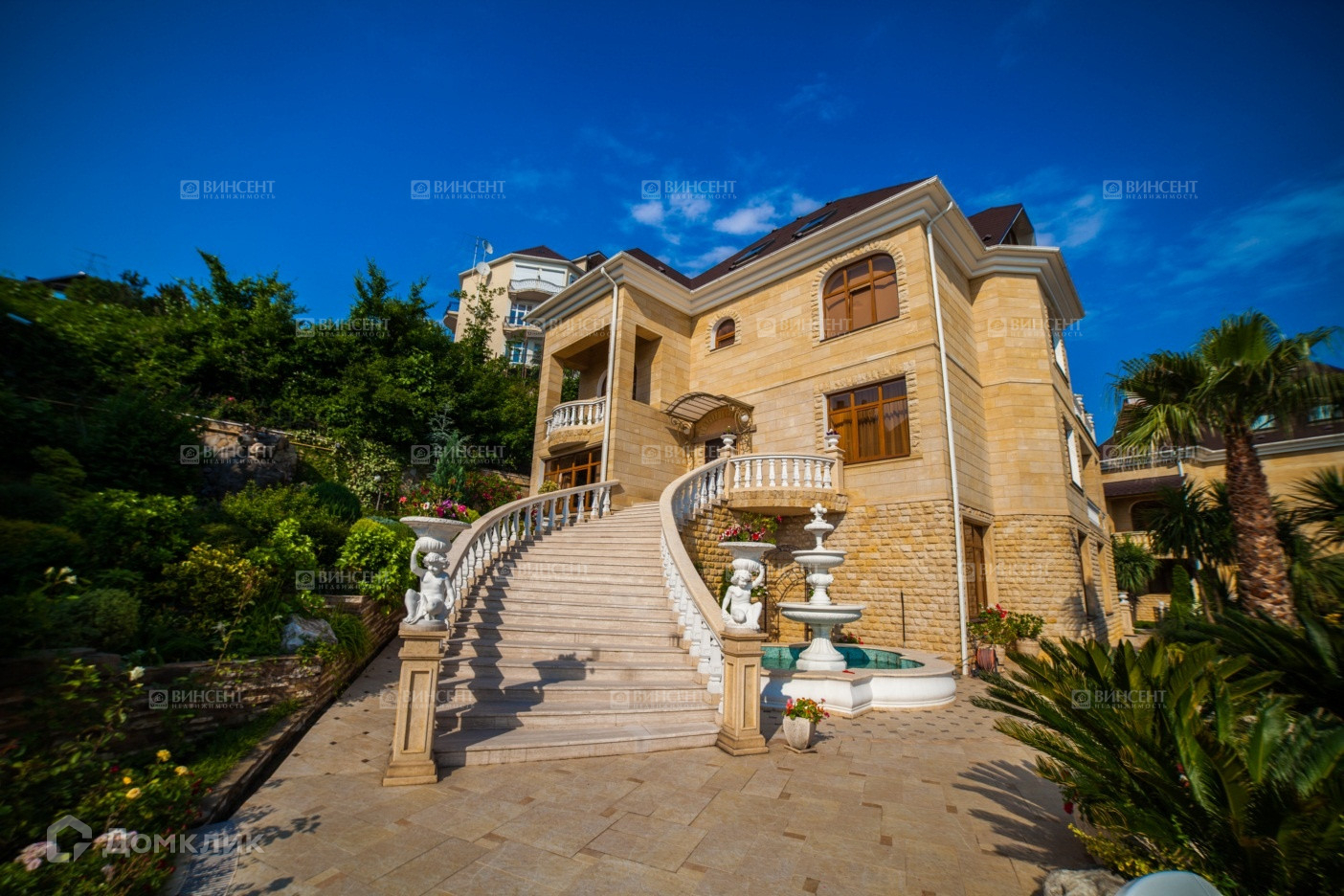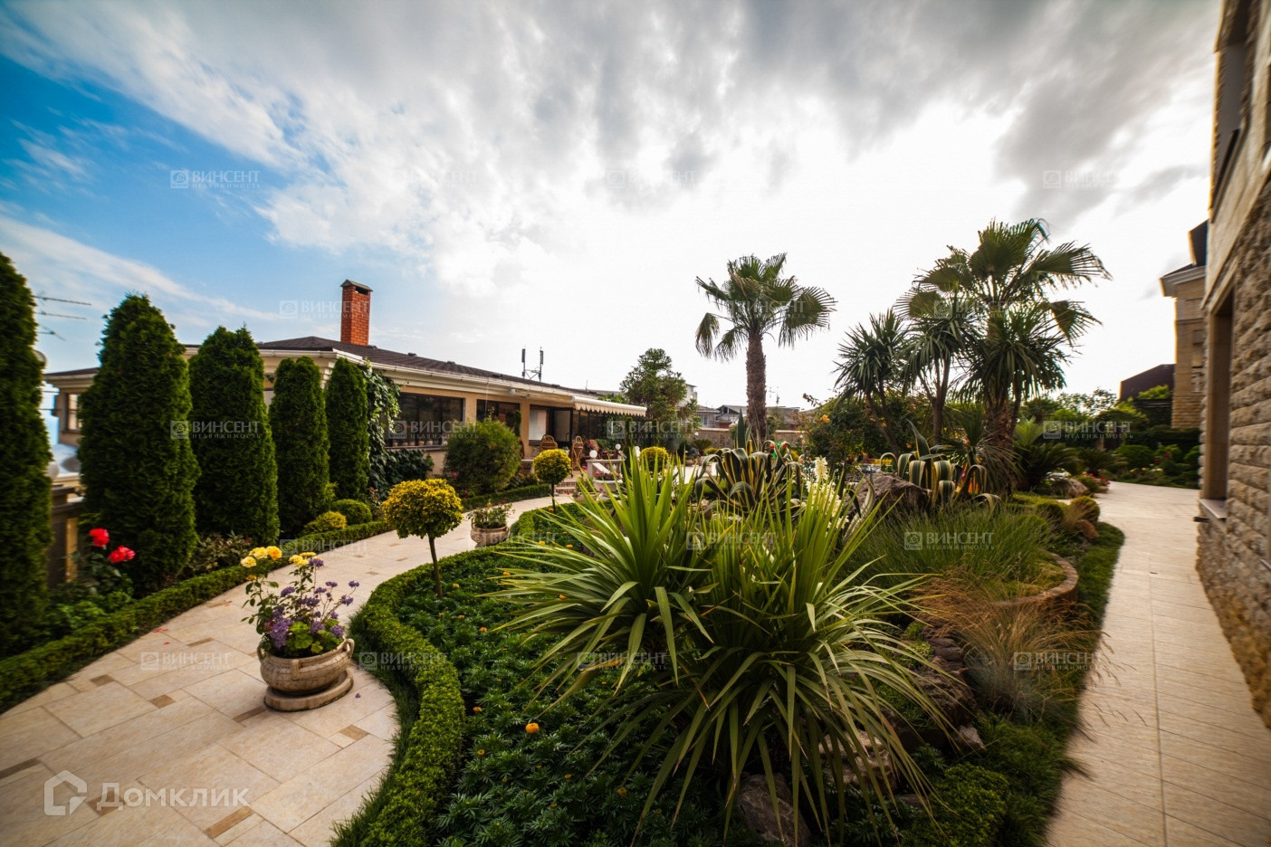 Двор Особняка, оформлен стараниями Ландшафтных Дизайнеров и обладает обилием Экзотических Деревьев и цветущих вечно зеленых растений!