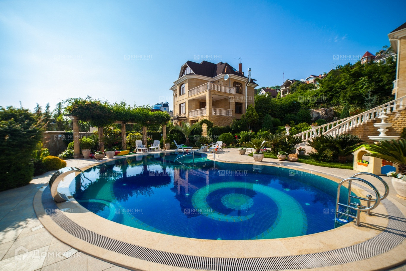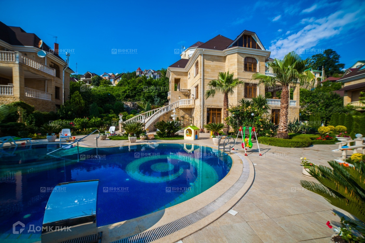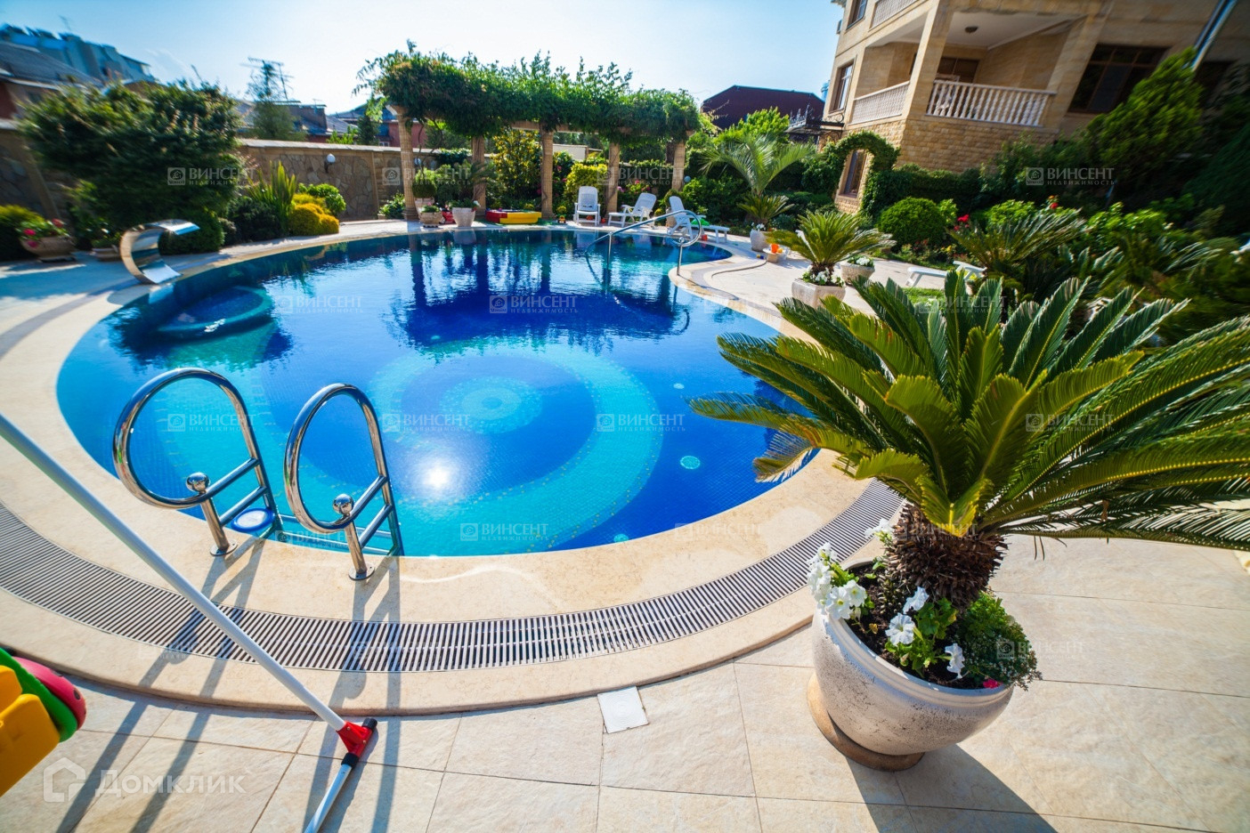 Двор Особняка, оформлен стараниями Ландшафтных Дизайнеров и обладает обилием Экзотических Деревьев и цветущих вечно зеленых растений!