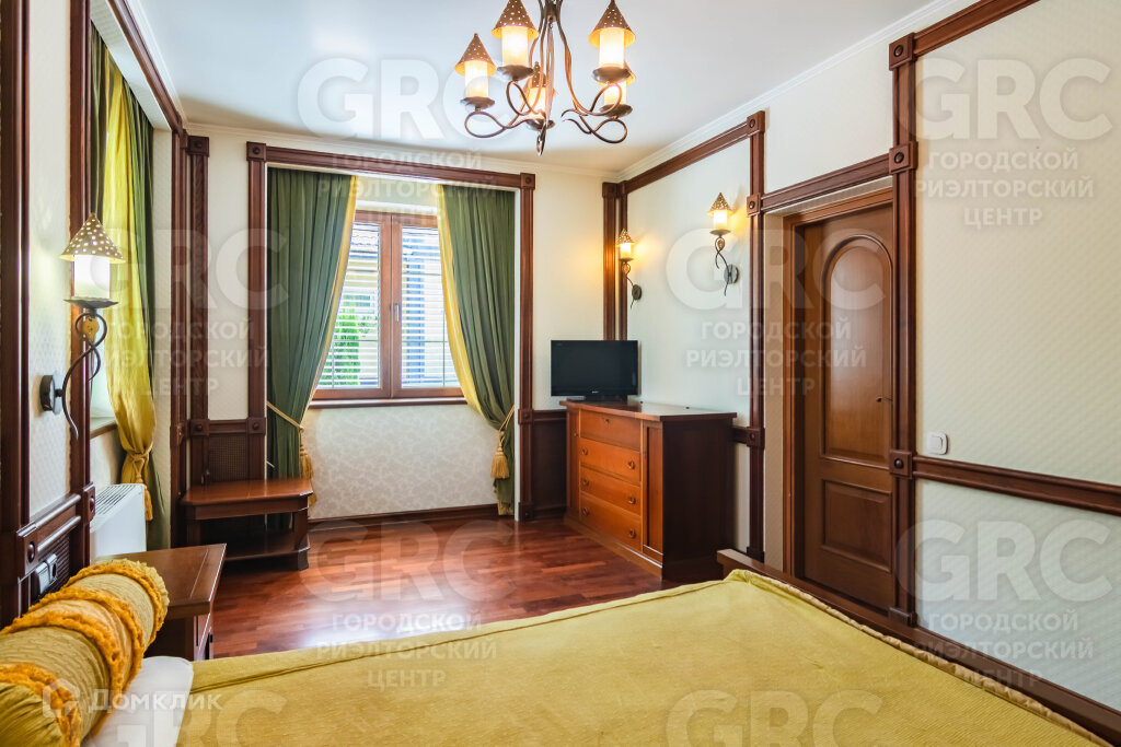 Второй этаж: шикарная спальня с гардеробной из натурального дерева.