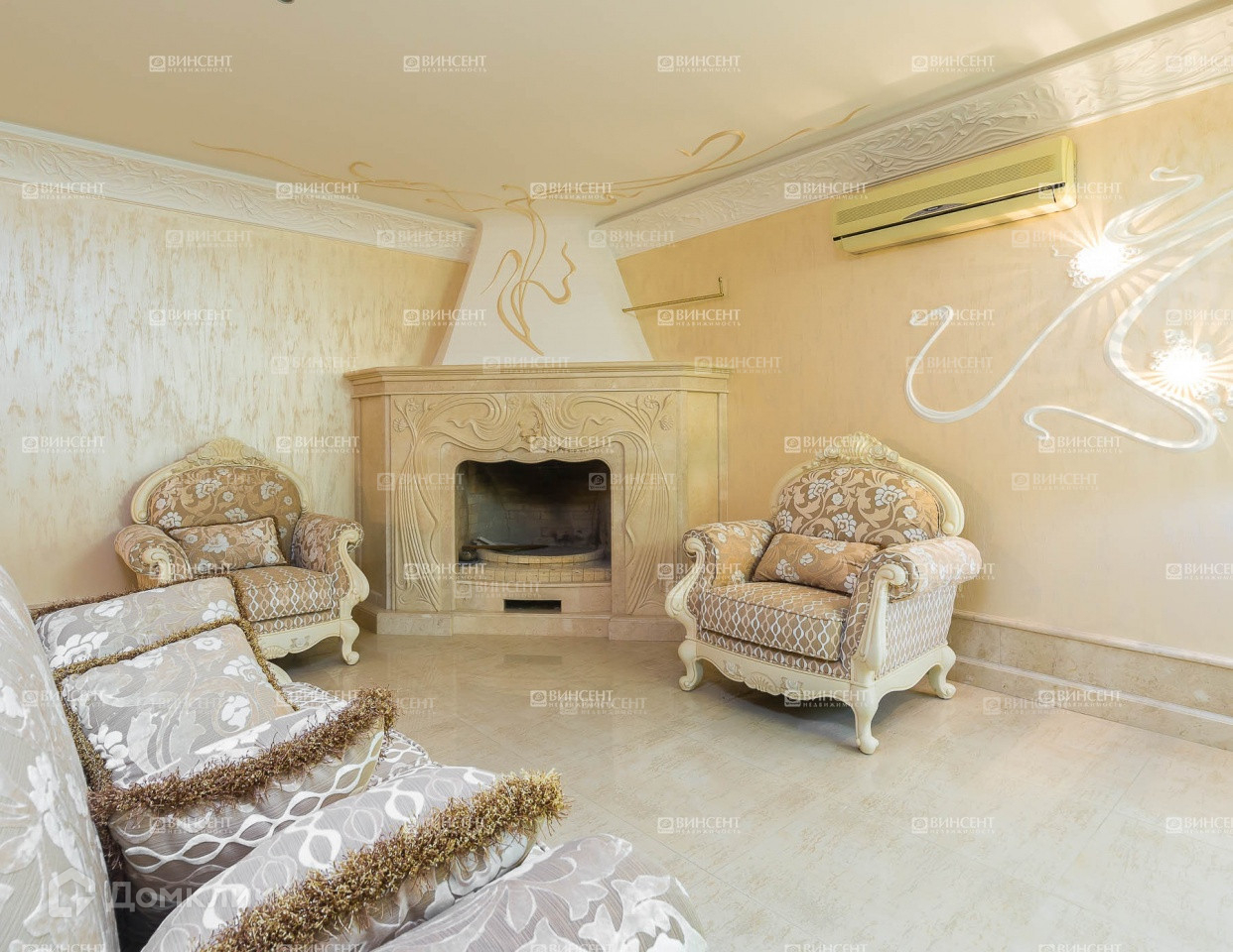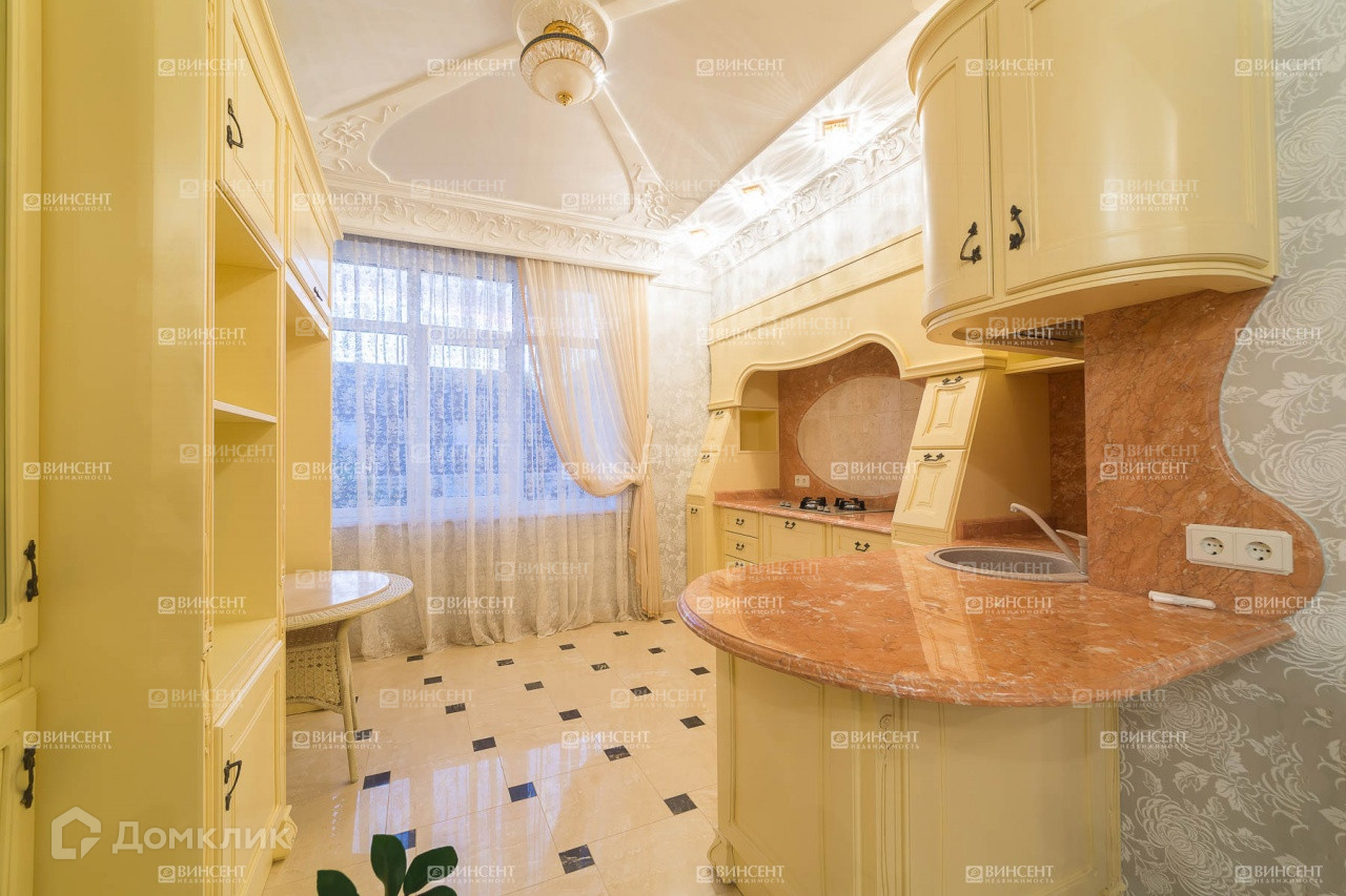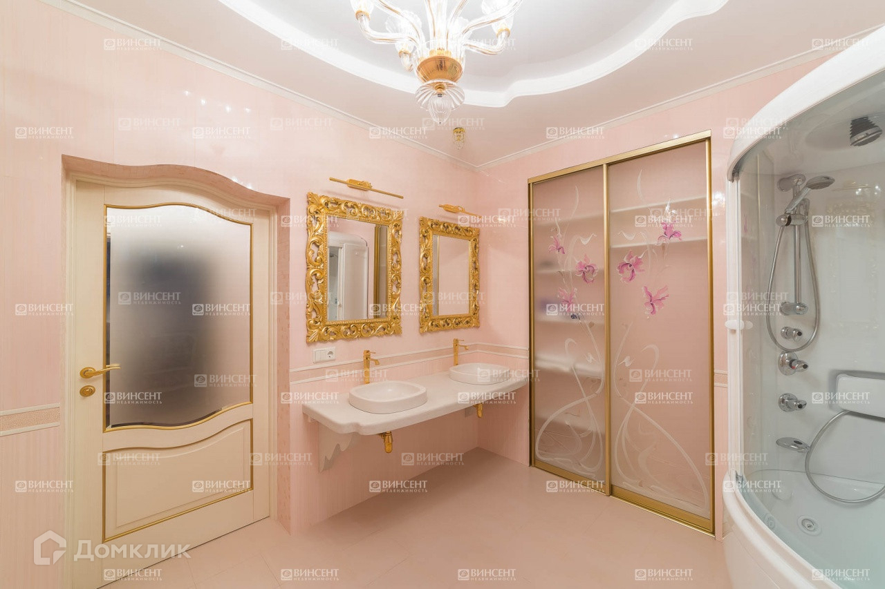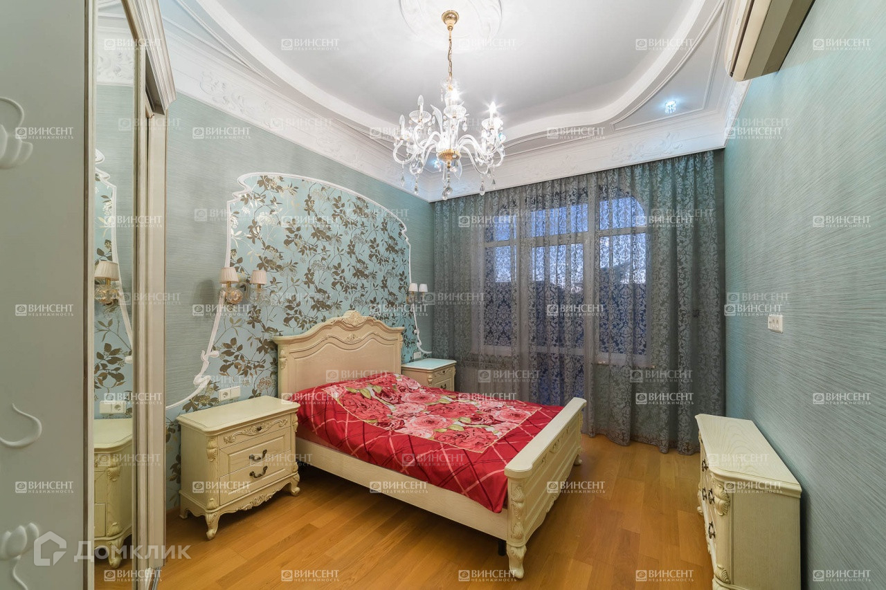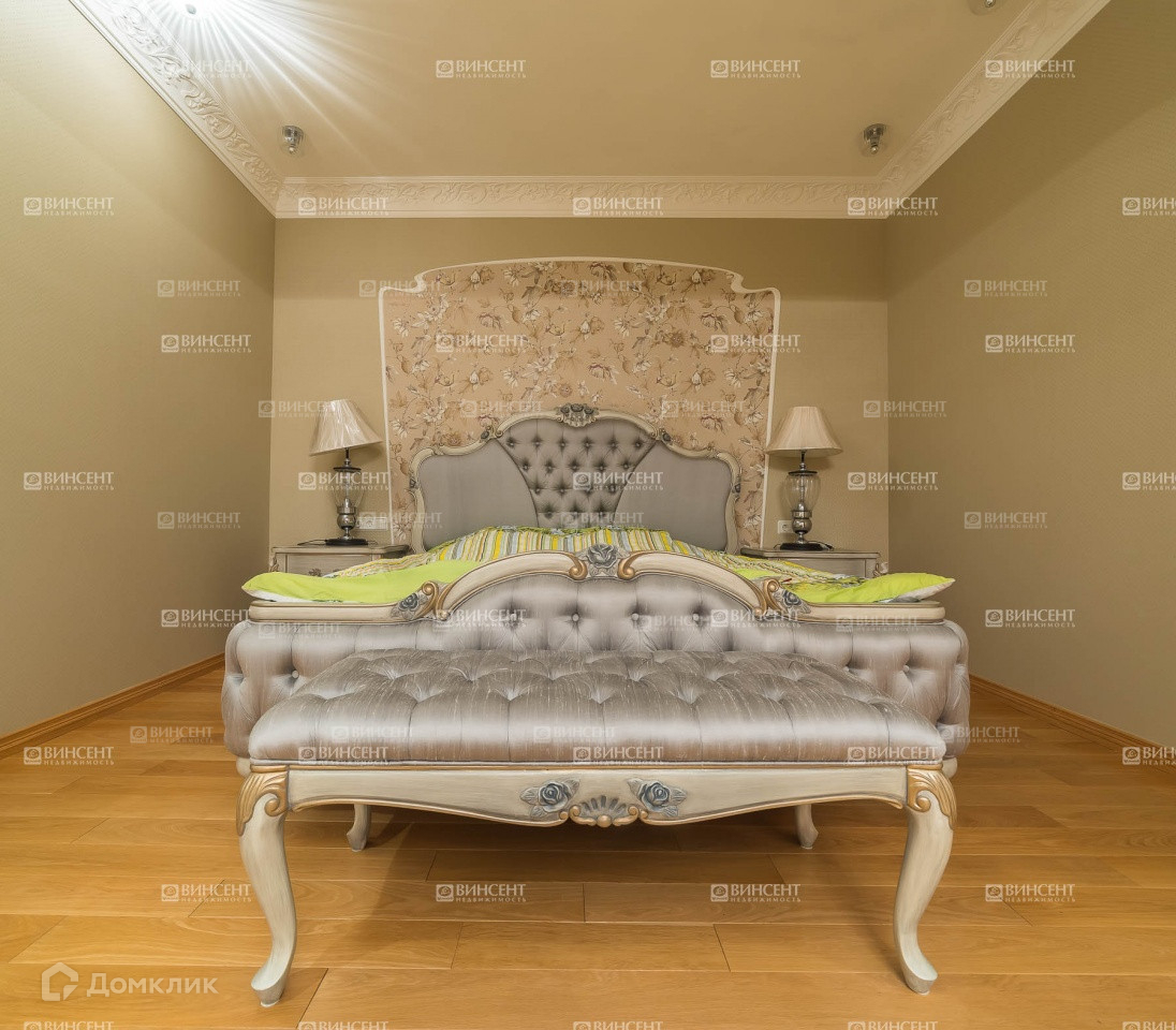 Внутреннее его убранство очень оригинально дополняет общий стилистический ансамбль и свидетельствует о безупречном чувстве вкуса владельцев! Изысканный классицизм, оригинально переплетающийся с мотивами неоклассики и романтичного средиземноморья, наполняет пространство дома невероятным уютом, легкостью и теплотой. В комнатах установлена дорогостоящая мебель, производства лучших фабрик Италии и Франции.  Гостиную комнату украшает лепнина – настоящее произведение искусства! Среди элементов декора также присутствует муранское стекло, бронза и т.д.