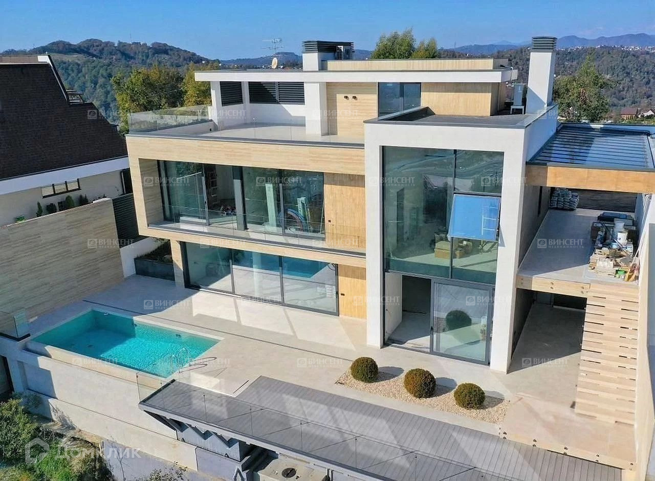 Площадь дома 300 м2, территория участка 5 сот. Технология строительства свайный фундамент + монолитный армированный каркас. Вилла исполнена в актуальном современном архитектурном стиле, при отделке фасада и благоустройстве территории использованы премиальные материалы. В остеклении использованы алюминиевый профиль и закалённое стекло guardian. На участке расположен переливной бассейн с подогревом. Предусмотрен крытый паркинг на 3 автомобильных места. Благодаря продуманному планировочному решению в доме разместились 4 спальные и гардеробные комнаты, несколько с/у, просторная кухня-гостиная, комната отдыха. Особенно отмечу, что архитекторами предусмотрен доступ к фантастическому панорамному виду на город, море и холмы практически из всех внутренних пространств виллы!