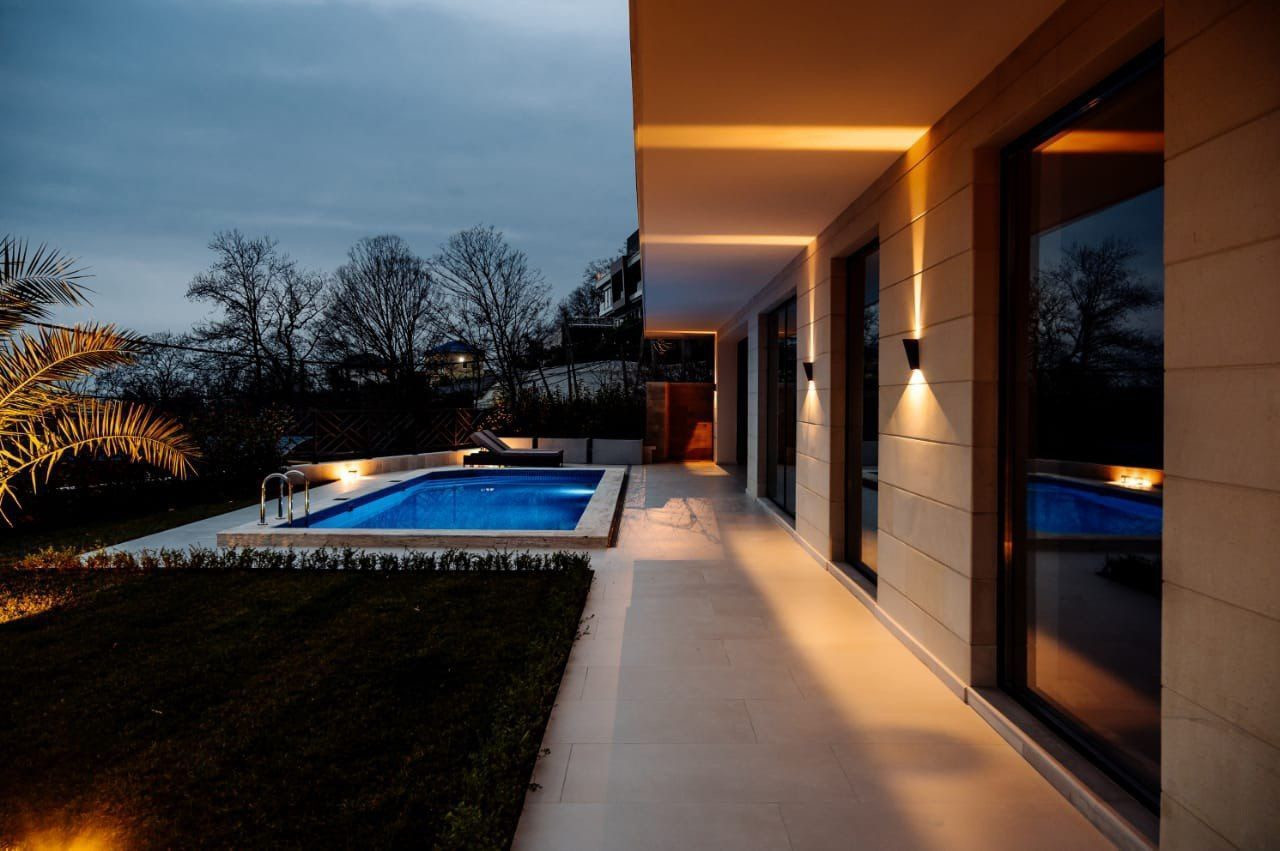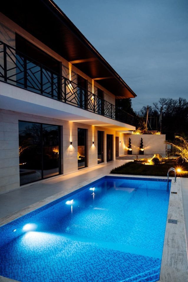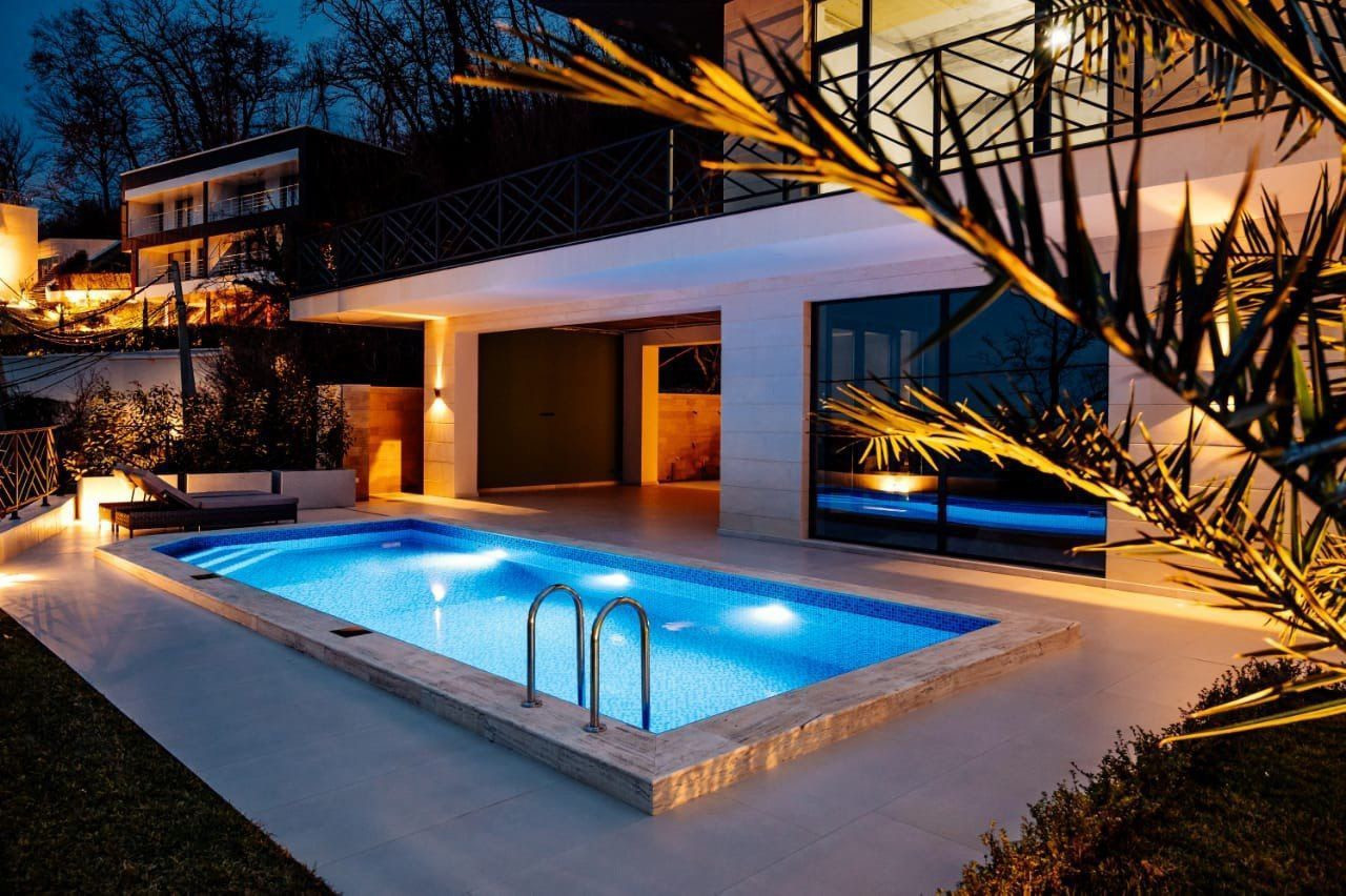 Бассейн на территории дома станет отличным местом для отдыха и купания в жаркие летние дни. Ландшафтное озеленение создает атмосферу уюта и комфорта, а вид на море подарит незабываемые впечатления от заката и рассвета.
