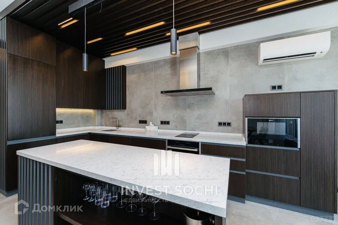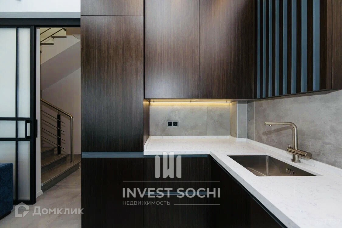 Таунхаус имеет дорогую премиальную отделку. Установлена встроенная и мягкая мебель, а также вся бытовая техника ведущих немецких брендов (Neff, Liebherr).Подключены ко всем городским коммуникациям: электричество 15 кВт, центральный водопровод и канализация, отопление и подогрев воды на природном газу. На территории  у дома  большой круглогодичный бассейн с подогревом воды.Установлена детская и спортивная площадка с уличными тренажерами. Вход и въезд на территорию через шлагбаум. Пульты только у жильцов. Видео наблюдение по всей территории. Приватность и комфорт. Хорошая экология и отличные возможности для здорового образа жизни гармонично сочетаются с городским уровнем комфорта. В шаговой доступности расположена вся инфраструктура центра Сочи.