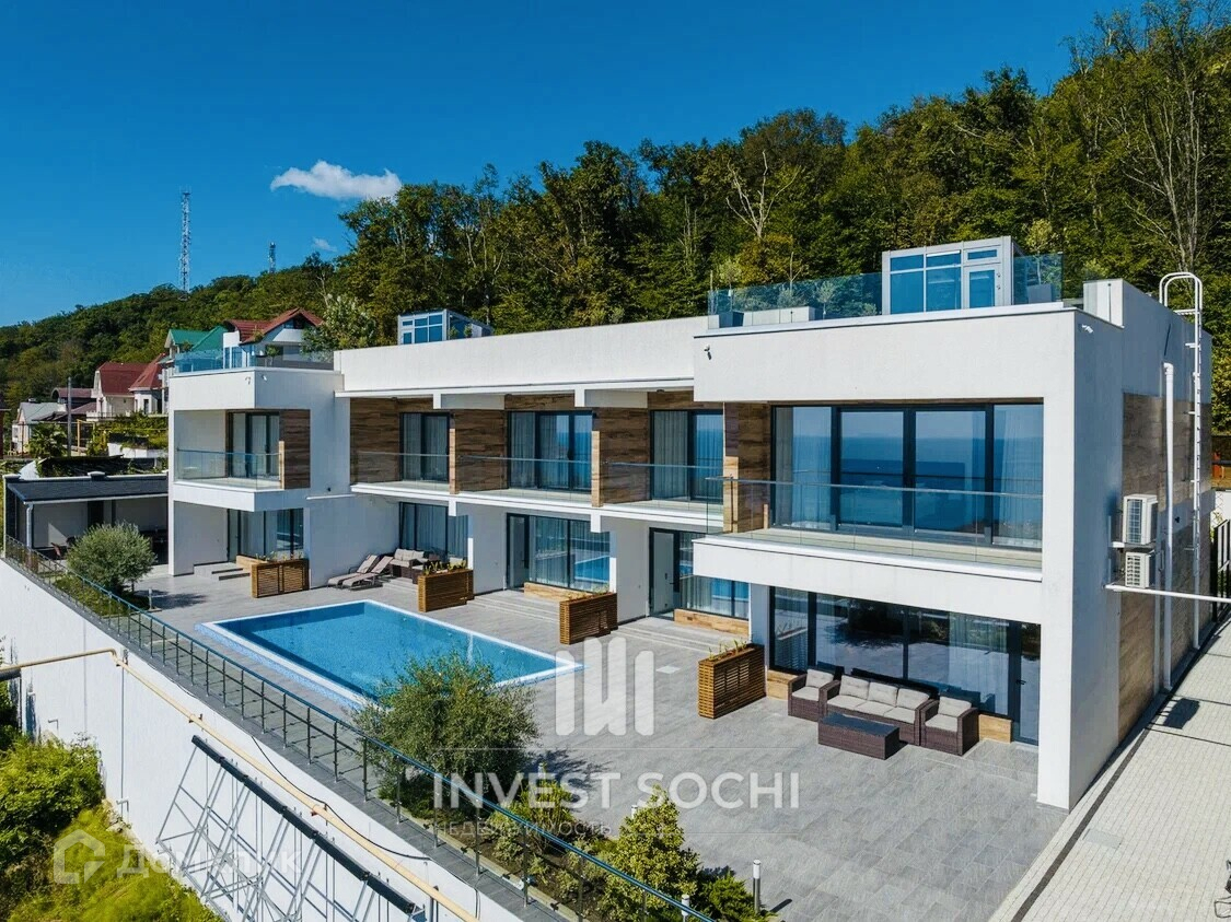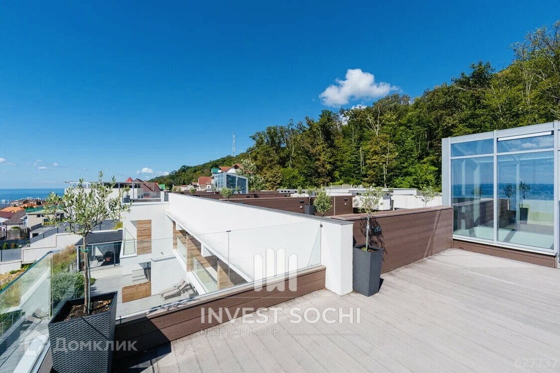 Двухэтажные таунхаус площадью 155 квадратных метров плюс эксплуатируемая кровля 60 кВ м (не входит в общую площадь). С солнечной стороны, а именно с террасы и кровли открывается великолепный панорамный вид на море, видно как Олимпийский парк, так и Морской порт Сочи. Таунхаус возведен из современных и качественных материалов. Проектом предусмотрен внушительный функционал: множество технических и хозяйственных помещений, просторная кухня-гостиная, открытые таррасы.