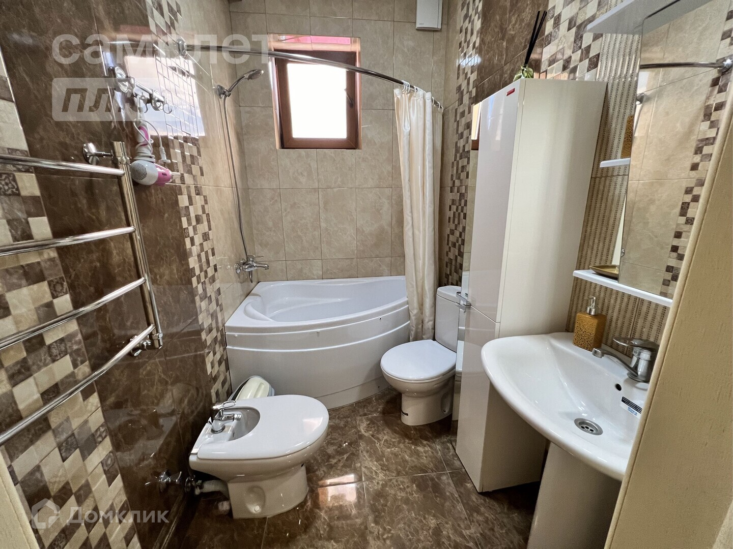 - в ванной кафель,джакузи,душевая кабина,современная стиральная и сушильная машина,