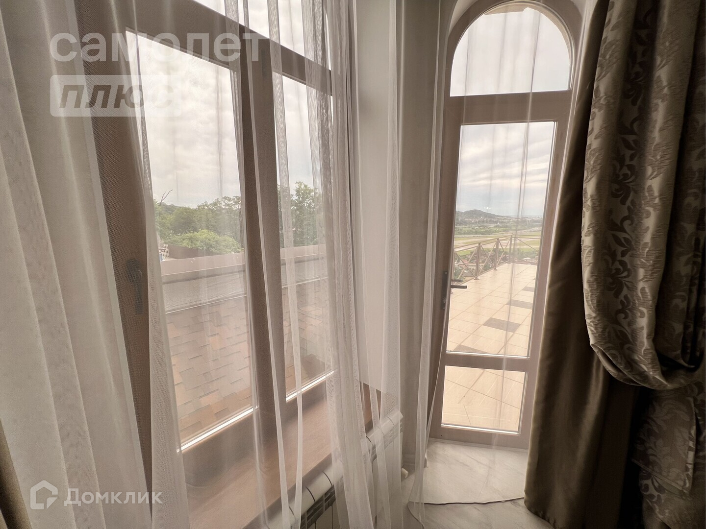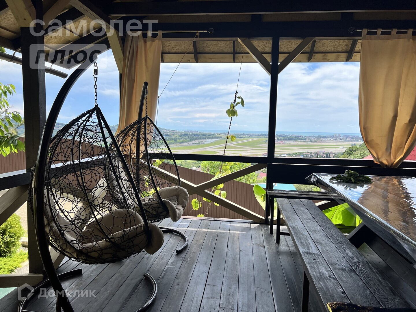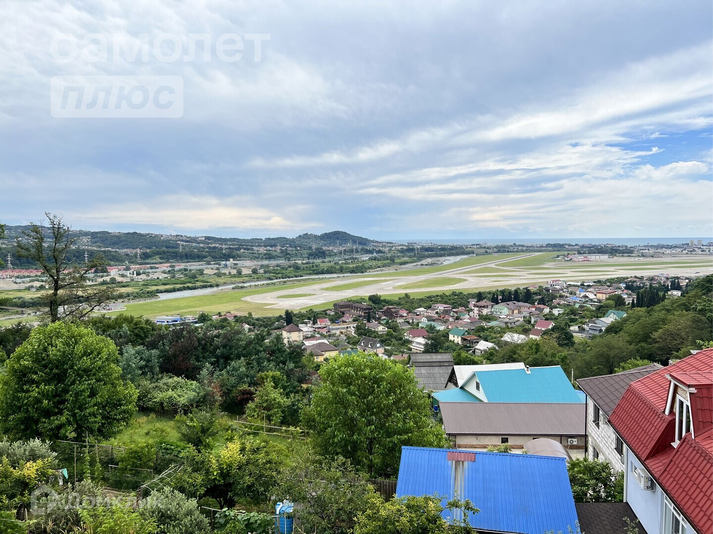 - роскошный вид из окна на аэропорт, море и Кавказские горы