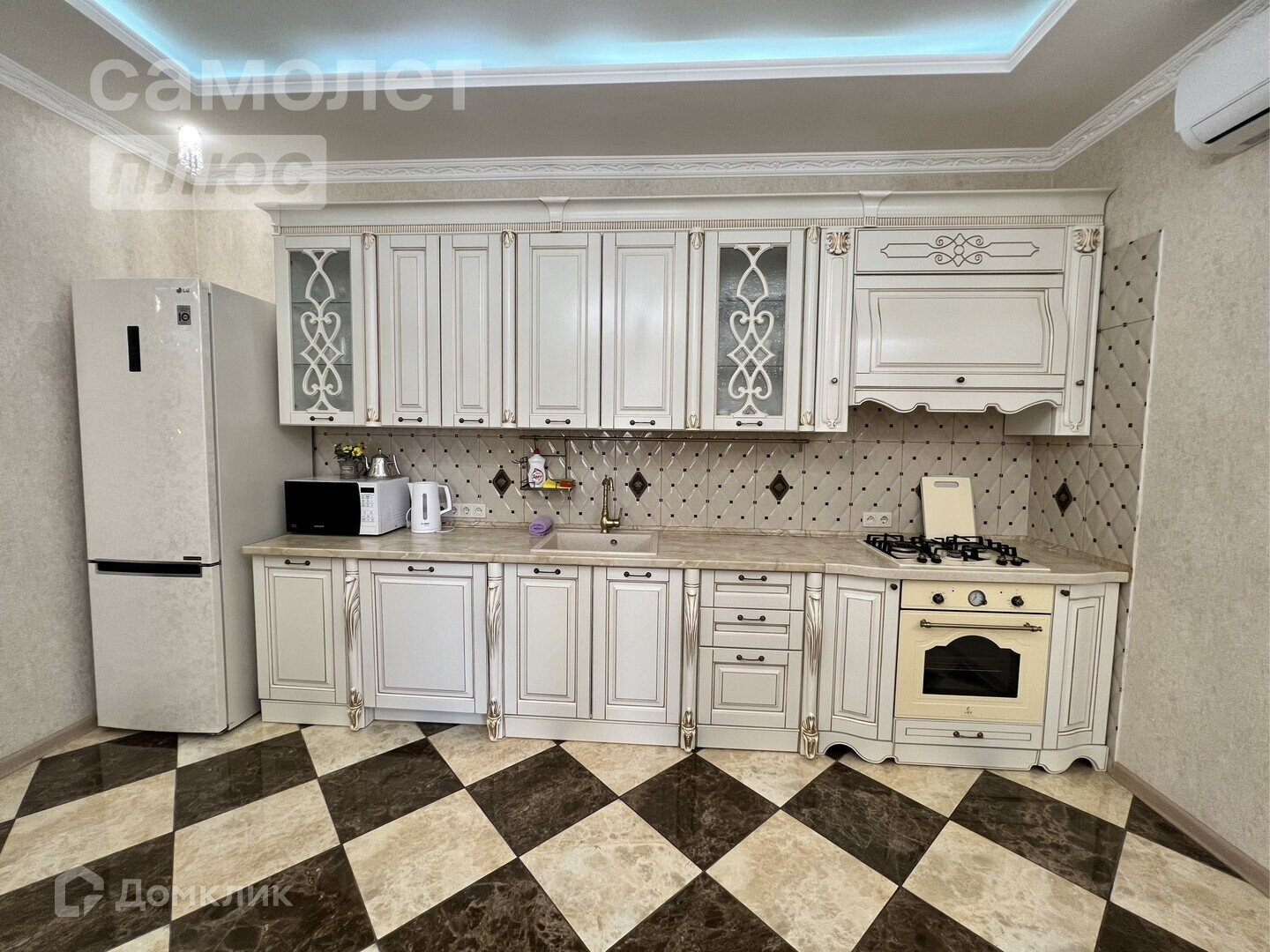 - встроенная кухня со всей необходимой бытовой техникой