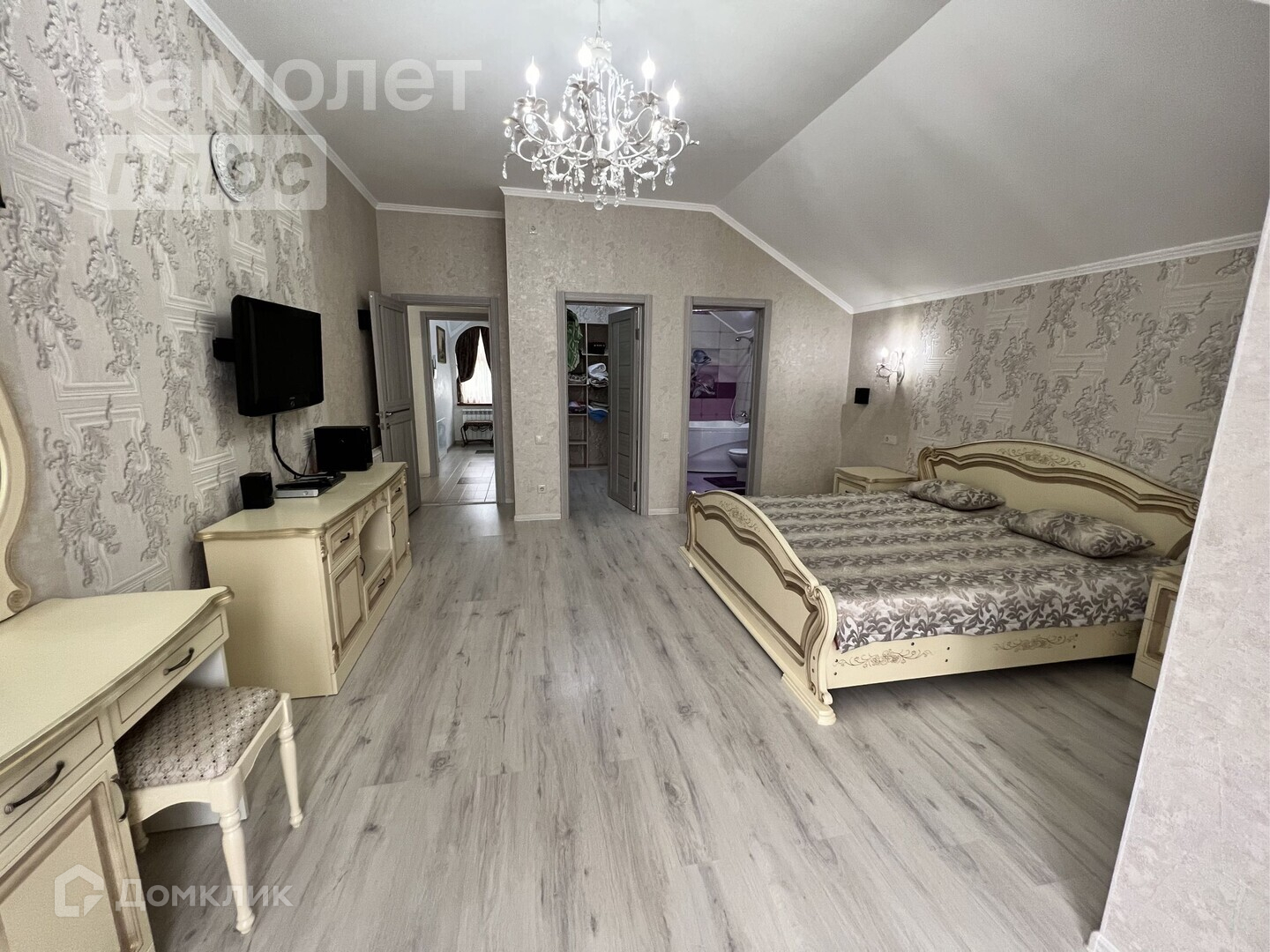 В Доме 3 этажа, 5 спален, 5 сан узлов, кухня гостиная, спорт зал, котельная.