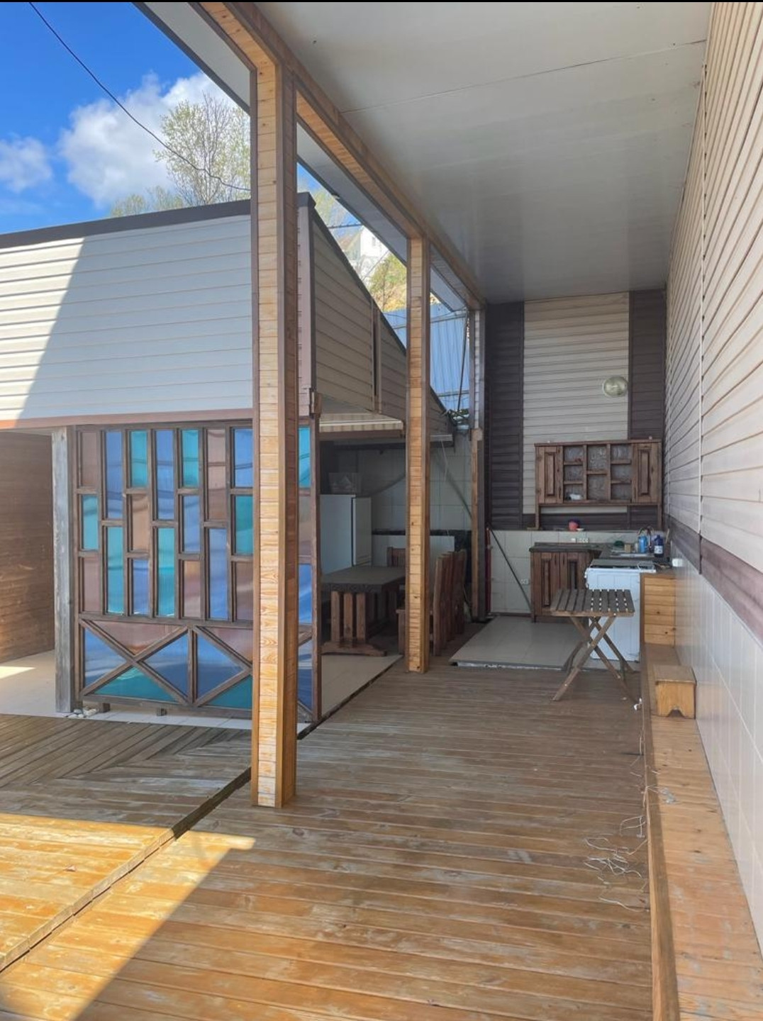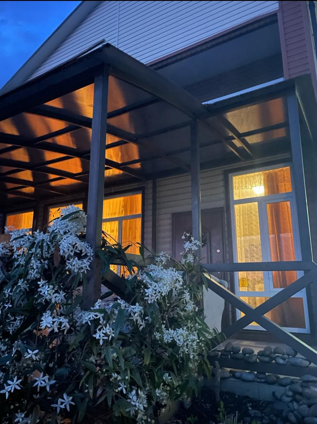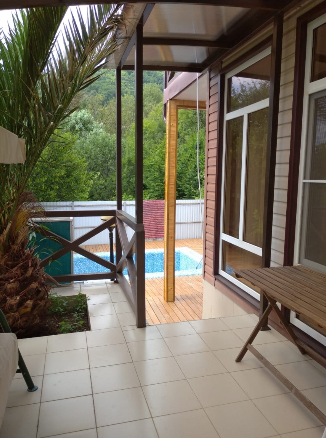 Продаю отличный дом в совхозе «Приморский». На первом этаже прихожая, большая кухня-столовая, санузел, на втором этаже две спальни и санузел. Обе спальни с терассами, с прямым видом на море. На территории дома есть летняя кухня, бассейн, зимний сад. Во дворе много плодовых деревьев, беседка с виноградом,экзотические растения и цветы.Вид на море с первого этажа.