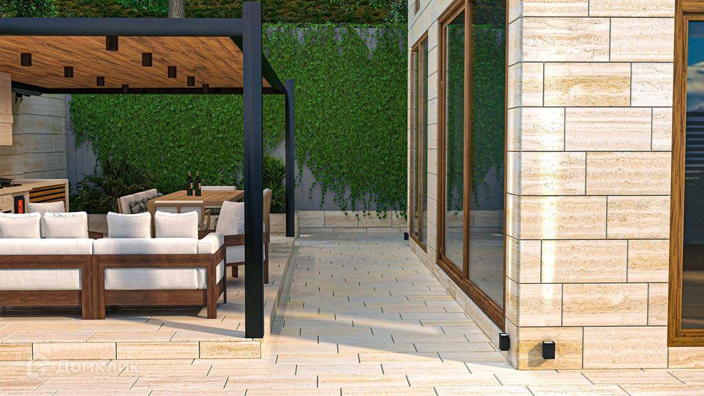 Одной из главных его характерных особенностей является использование преимущественно натуральных материалов, таких как камень, дерево и стекло. Для домов в этом стиле характерны встроенная по периметру дома подсветка и остекление гостиной в пол, а также наличие больших окон.