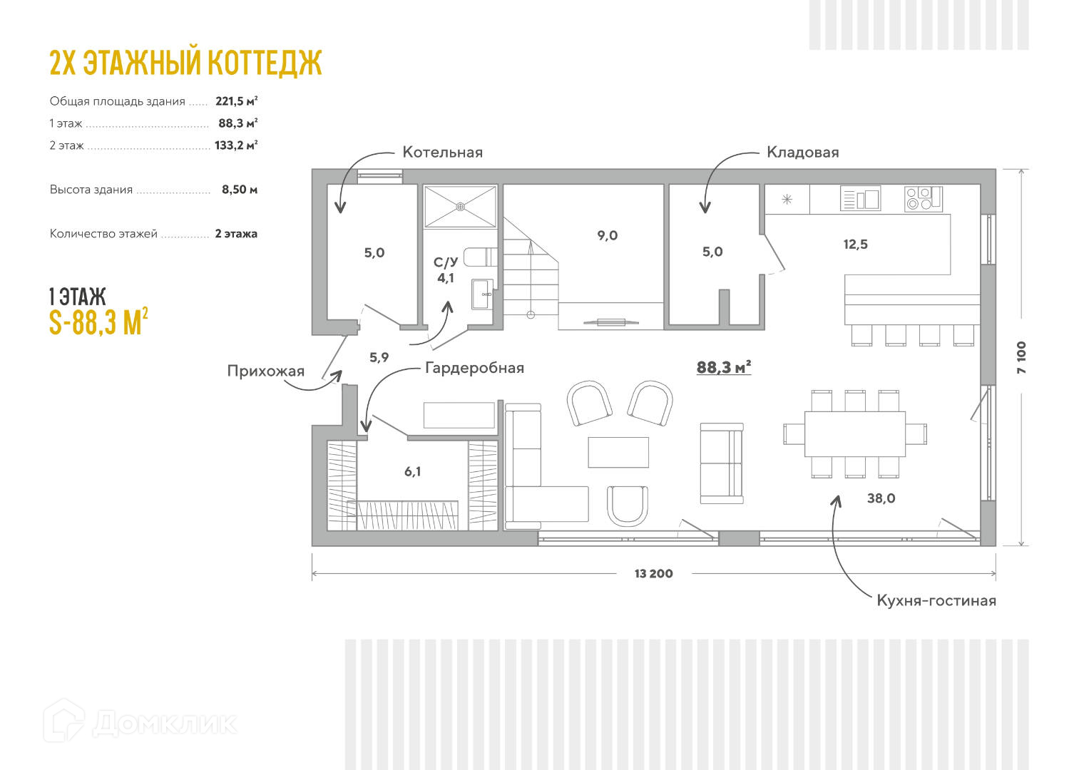 Общая площадь 221.5 м2