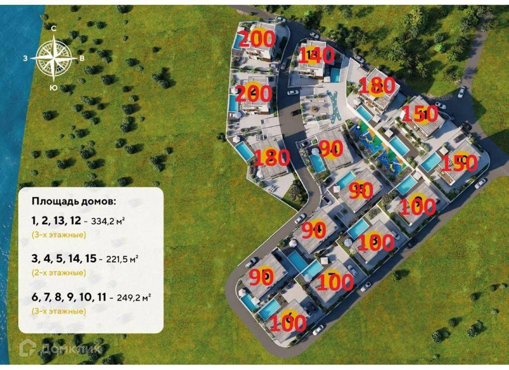 Лот № 171731. Сочи - самое лучшее место для жизни. Это уникальное сочетание моря, гор, субтропического климата и природы. Мы разработали совершенно новый проект для тех, кто ценит комфорт, единение с природой и размеренный ритм жизни. The Residence - коттеджный поселок закрытого типа европейского формата. 15 домов спроектированы с соблюдением всех экологических стандартов, фасады выдержаны в едином лаконичном стиле High Тесп (Хай-тек). tне residence Коттеджный поселок бизнес-класса.- 15 коттеджей в едином архитектурном стиле - участки 4-7 соток - площади коттеджей  220 до 335 м2.- 2-х и 3-х этажные, несколько вариантов планировки, балкон и терраса.Высокие потолки. высота потолков от 3 до 4 метров- Автоматические ворота- Парковка на 2 машины- Собственный бассейн с шезлонгом- Зона барбекю- Озеленение в тропическом стилеИдеальное место для проживания, ведь совсем недалеко от вас множество природных, архитектурных и развлекательных локаций. Вам всегда будет, чем заняться. А если ехать никуда не хочется, то можно организовать барбекю-вечеринку и прекрасно провести время с близкими и друзьями возле собственного бассейна. Гора Ахун (16,5 км -32 мин) Известная гора с башней высотой •, м в романском стиле,  с которой открывается панорамный вид на Сочи и море.Каньон и пещера Чертовы ворота (12,4 км - 27 мин Природный и археологический памятник. Каньон белые скалы(10,8 км - 27 мин) Красная Поляна (58,6 км - б3 мин) Курортный поселок городского типа в Кавказских горах.