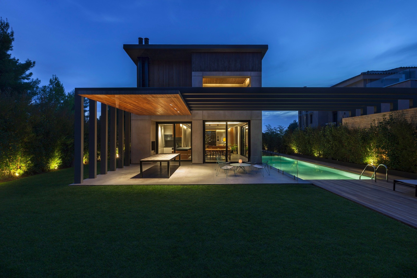 Прекрасный новый дом с видом на море и город с открытыми террасами, панорамными видами на море, бассейн, зона барбекю, ландшафтное озеленение в окружении заповедной территорией национального парка.