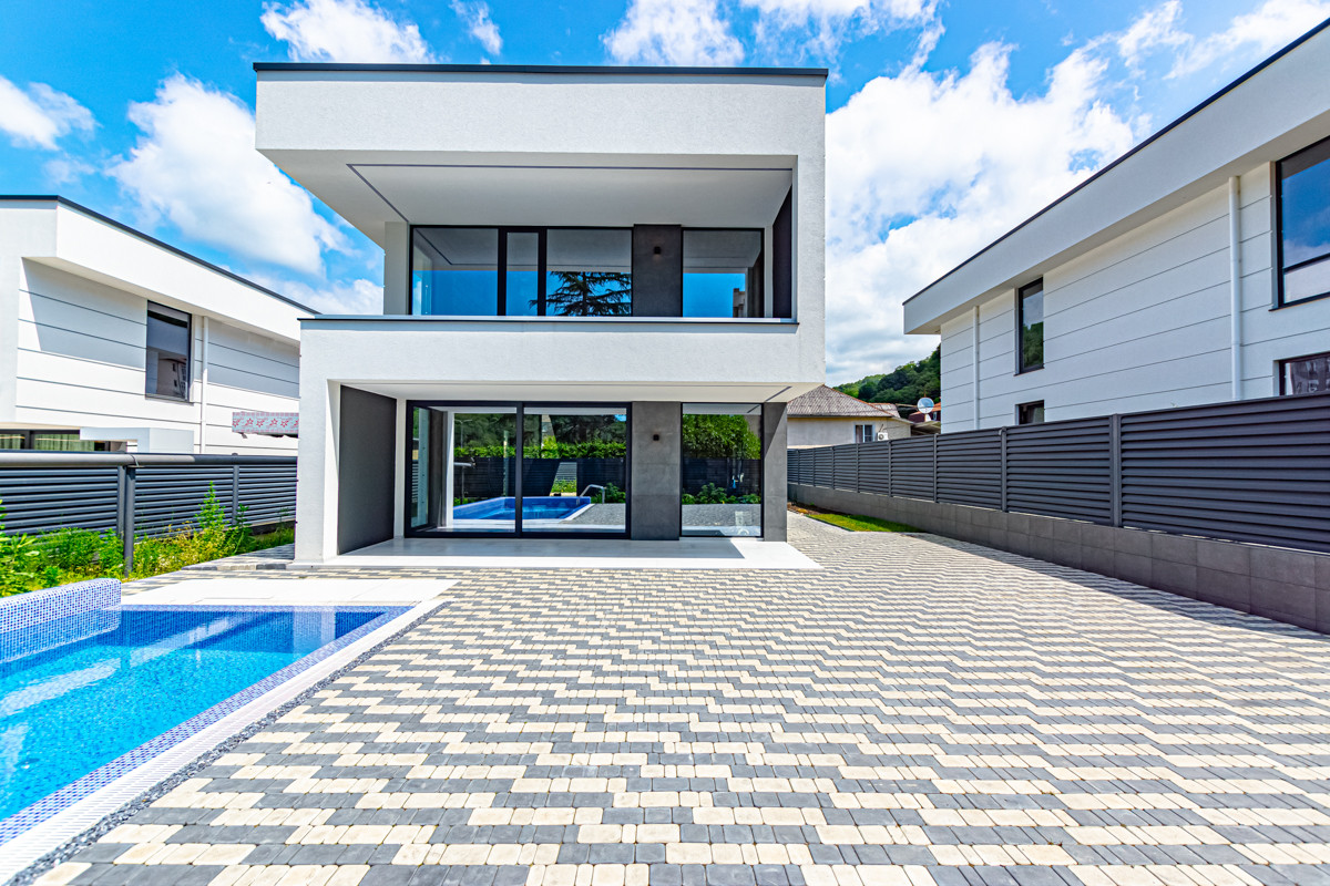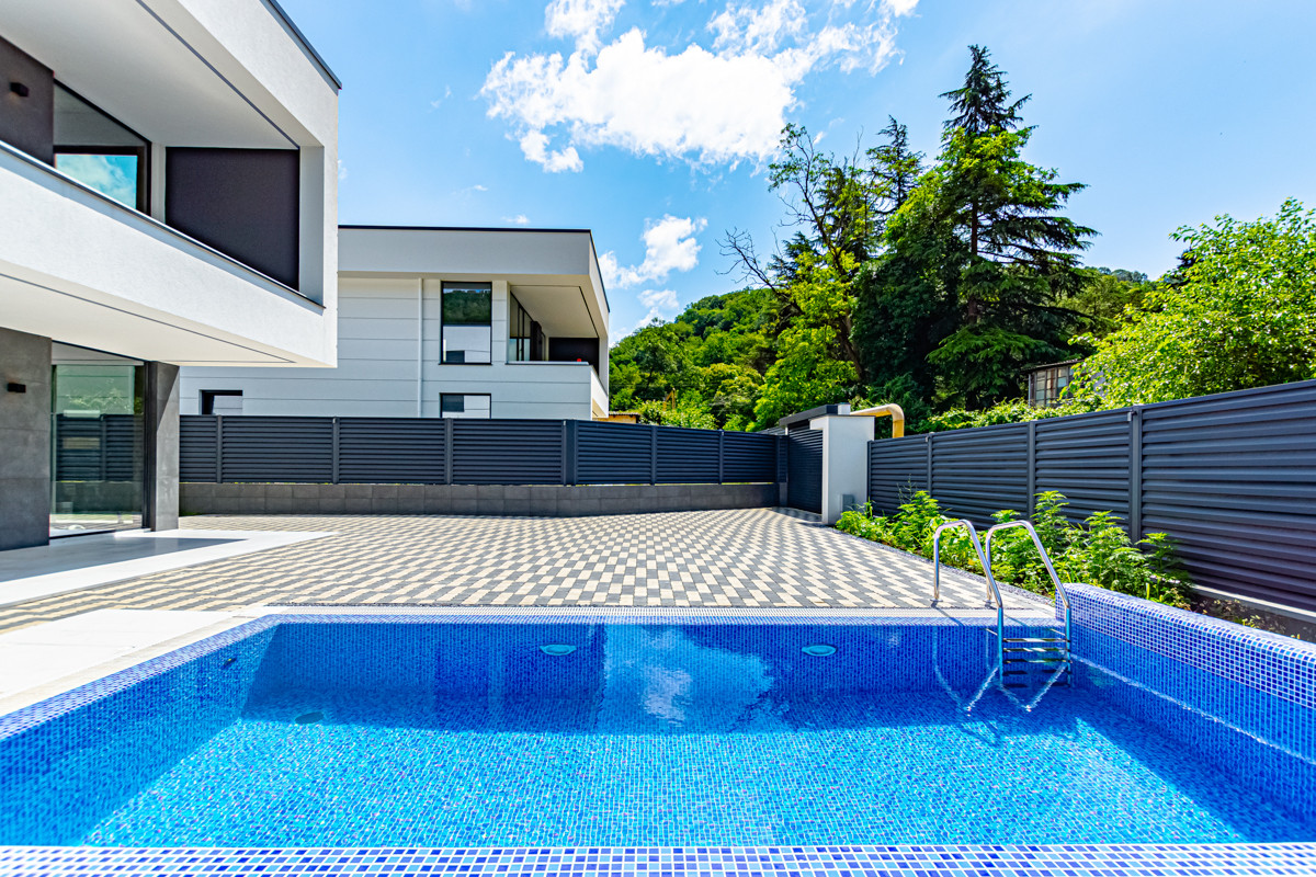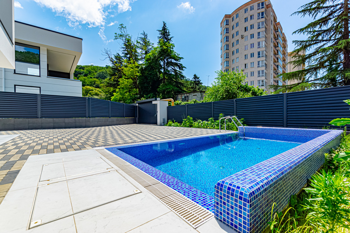 Земельный участок 5 соток. На территории парковка для автомобилей, бассейн и зона отдыха.