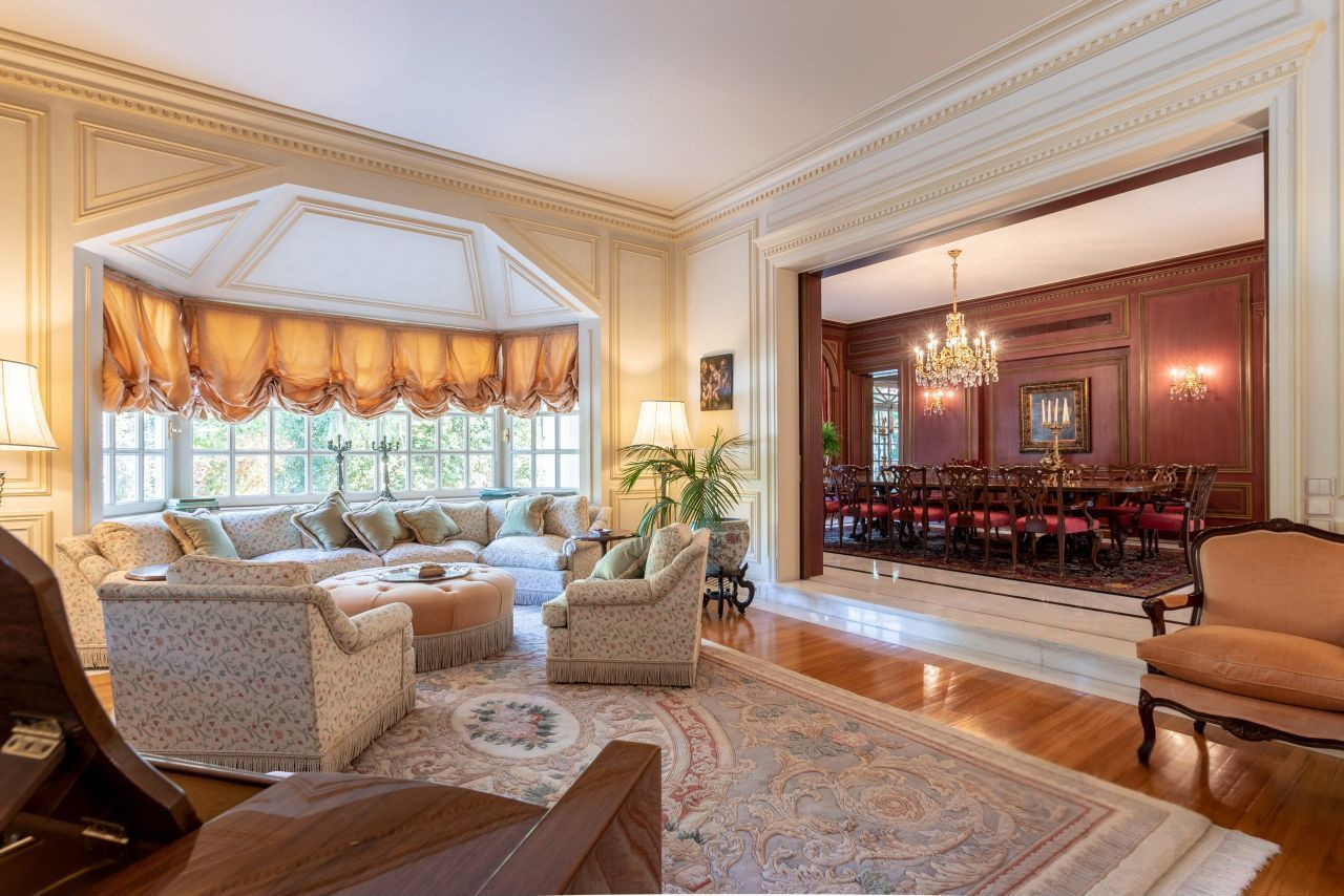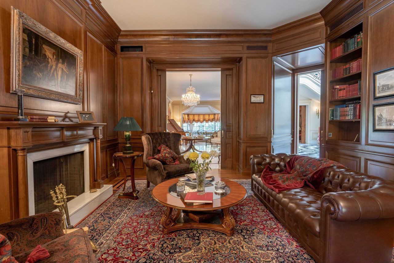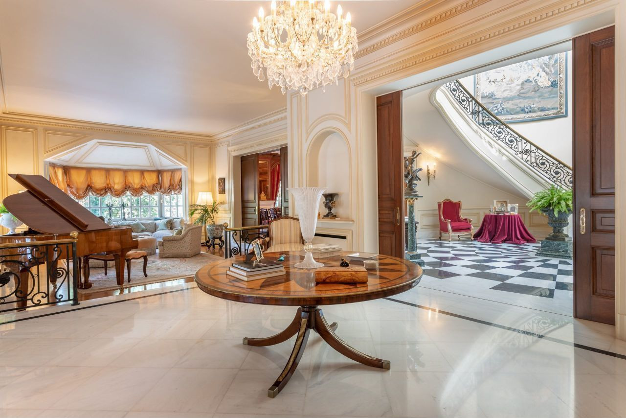 Вилла предлагает впечатляющие приемные зоны, роскошные гостиные и обеденные зоны, престижный офис, домашний кинотеатр, большую игровую комнату и тренажерный зал, оборудованный душами и сауной.
