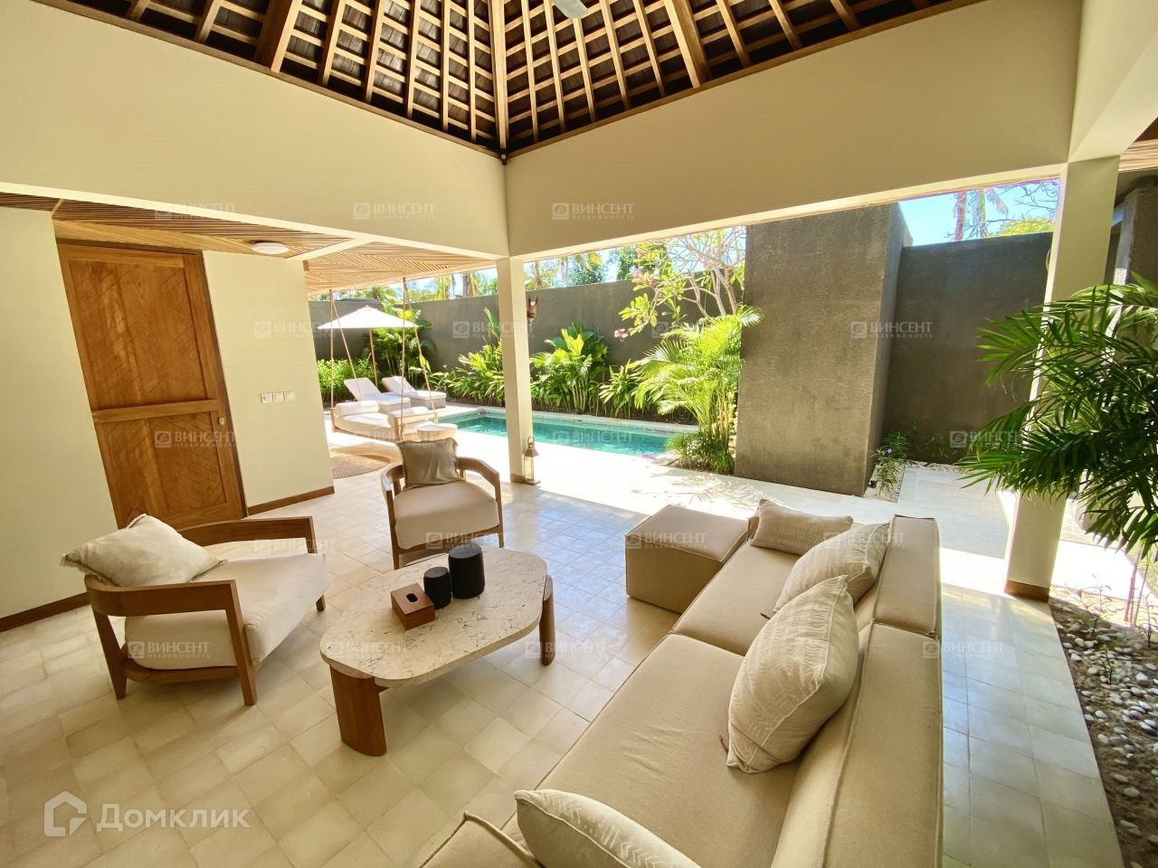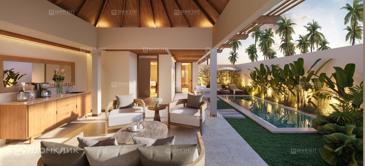 На территории дома шикарная терраса, теплый круглогодичный бассейн.