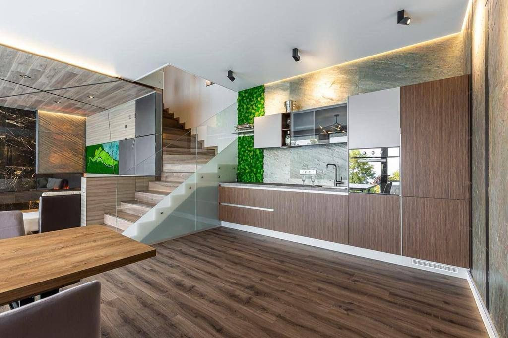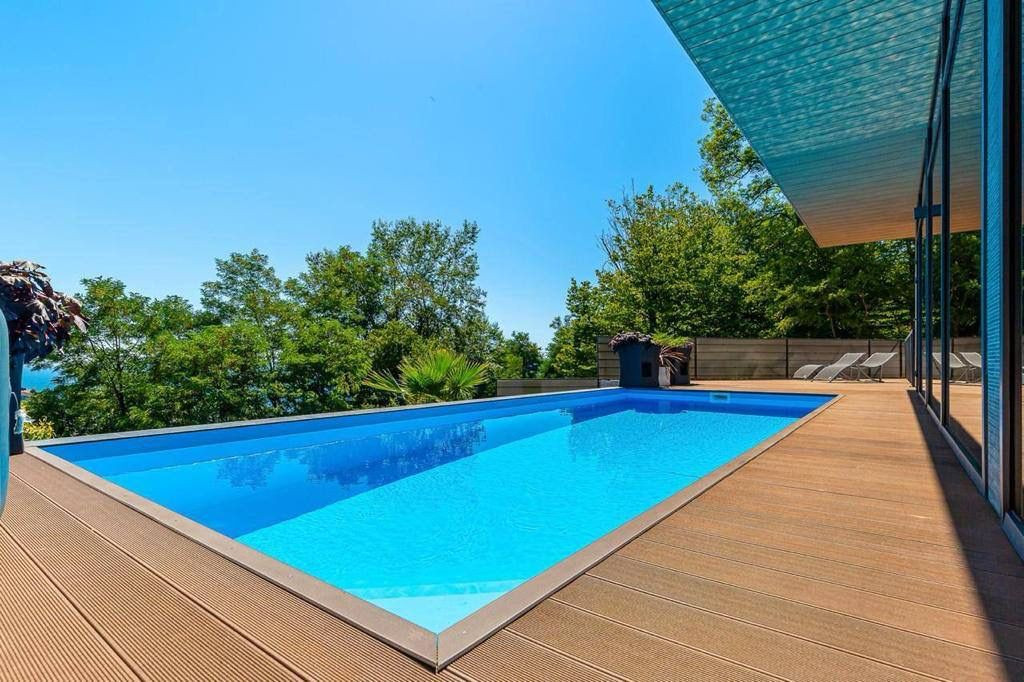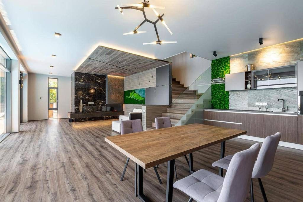 Современный интерьер и экстерьер с просторными зонами отдыха и террасами.