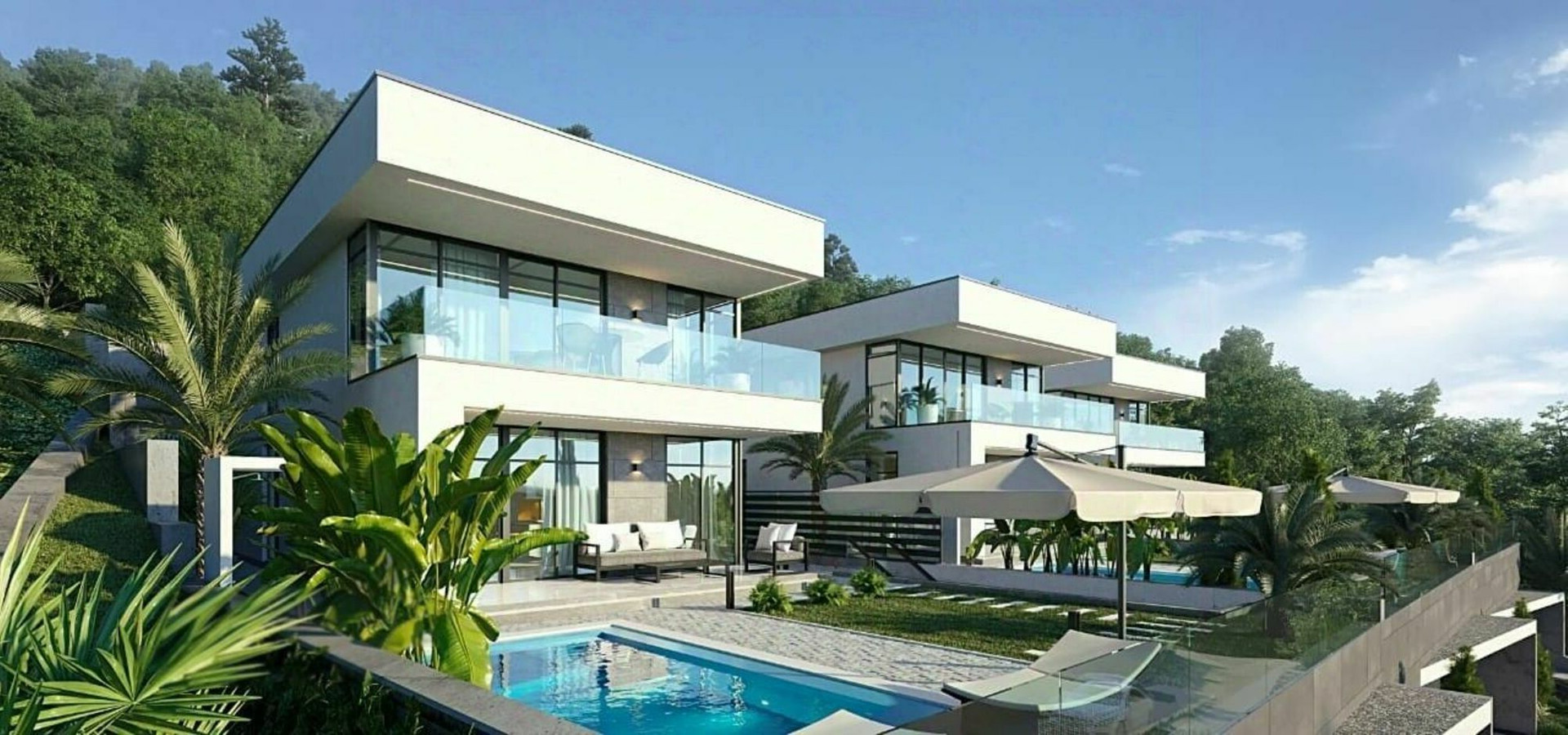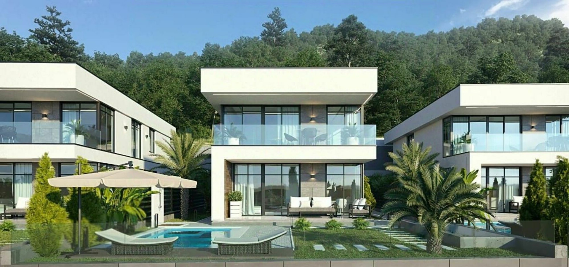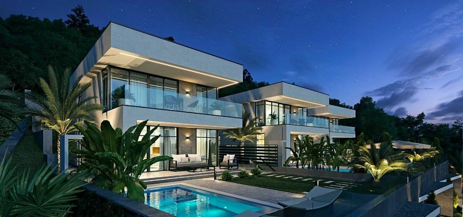 Каждый из домов располагает индивидуальным бассейном с оригинальной подсветкой в темное время суток!