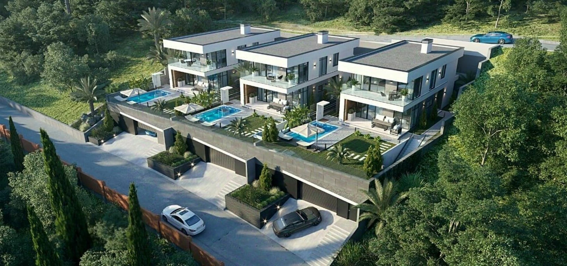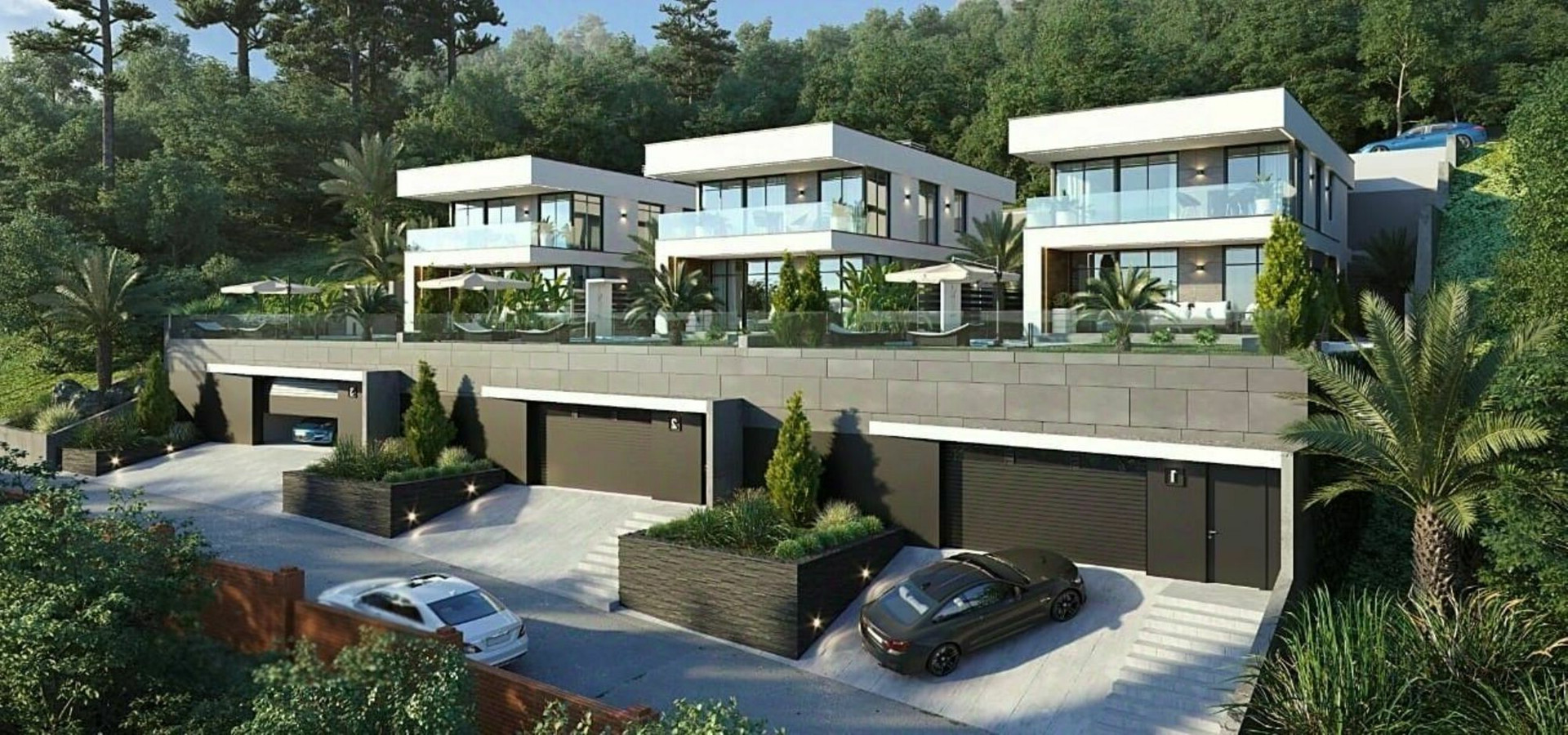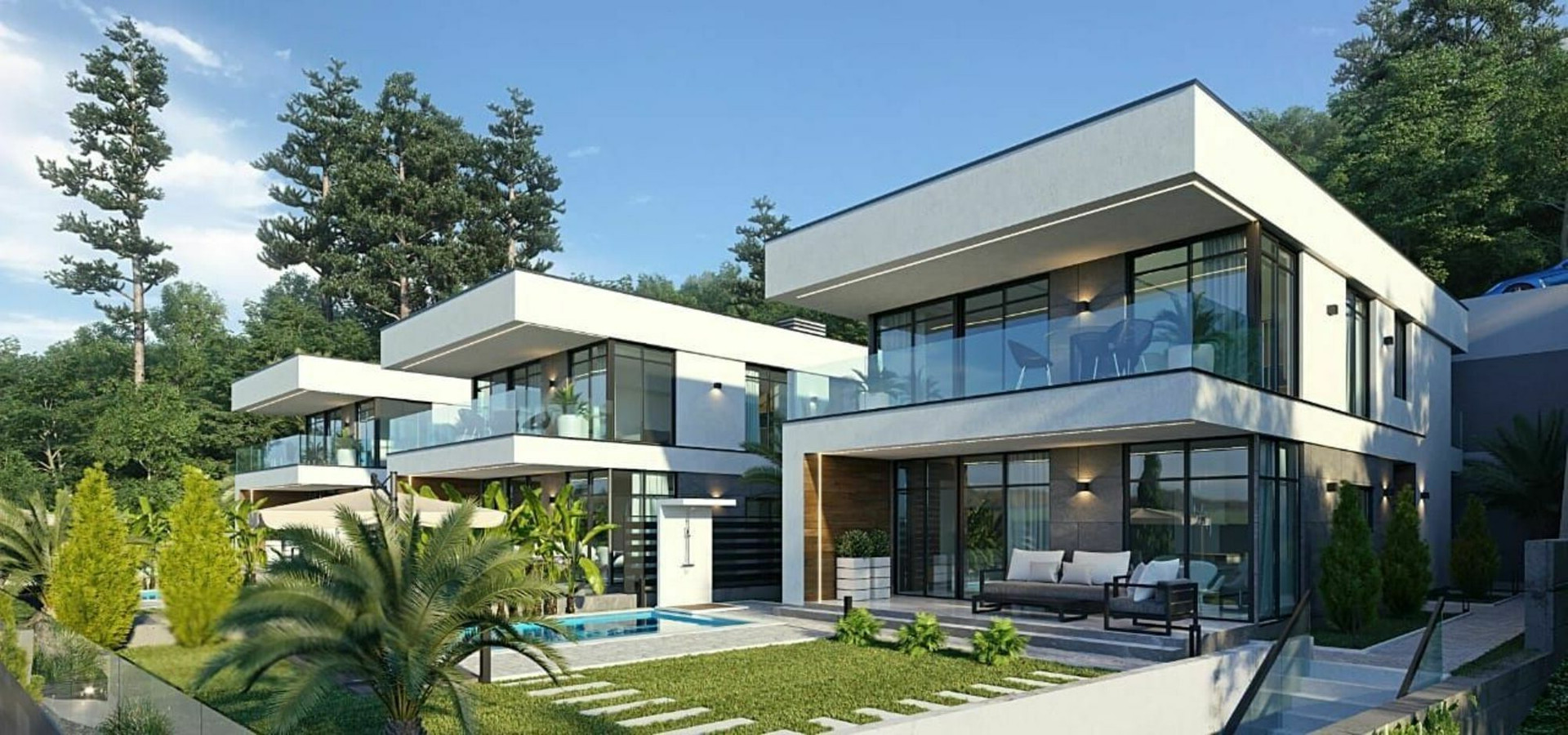 Архитектора домов будет выполнена в лучших традициях стиля Hi-Tech. Он достаточно гармонично вписывается в естественный природный ландшафт и приковывает к себе восхищенные взгляды. Минималистичный ландшафтный дизайн прилегающей территории дополняет внешнюю эстетику поселка.