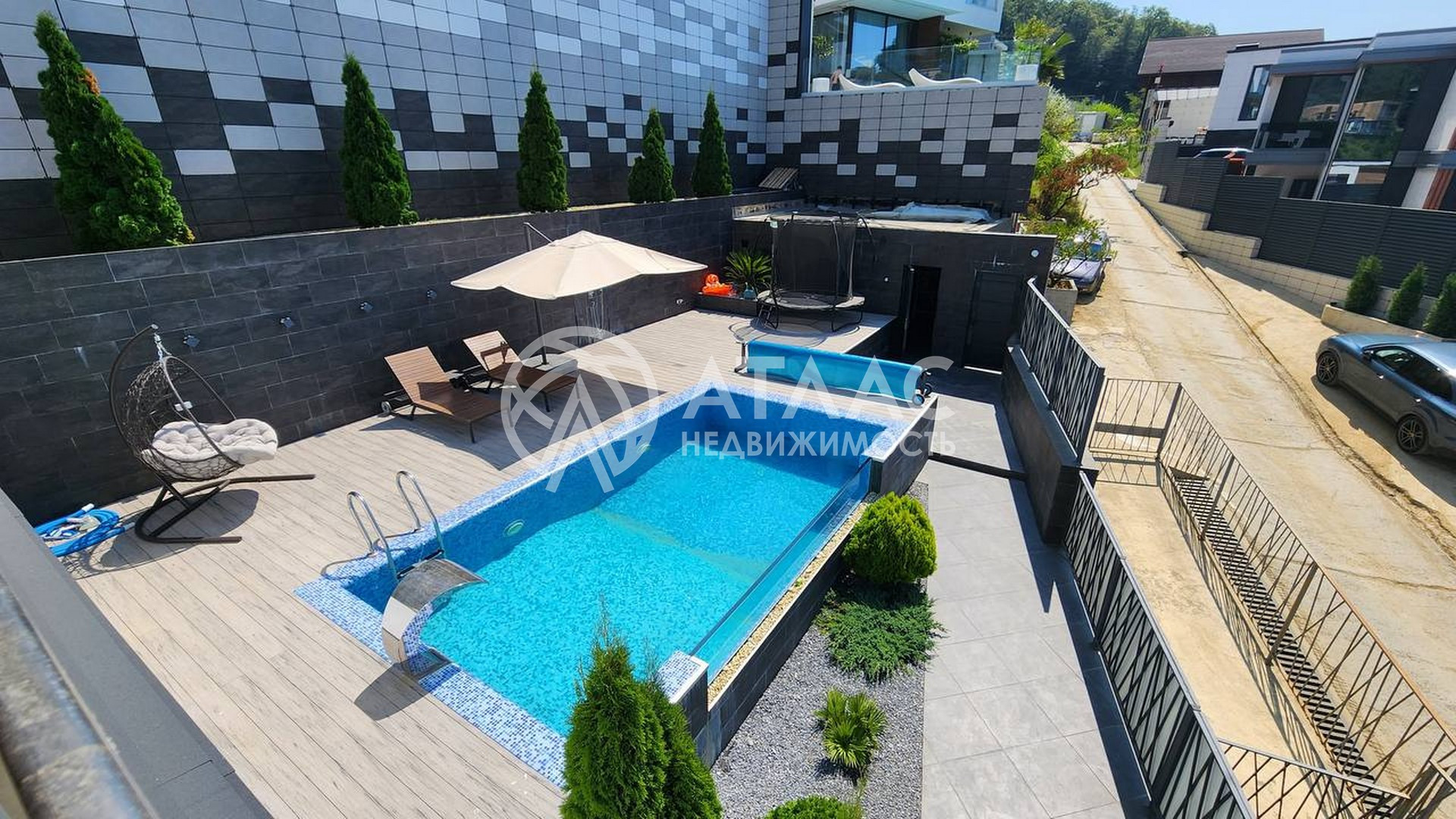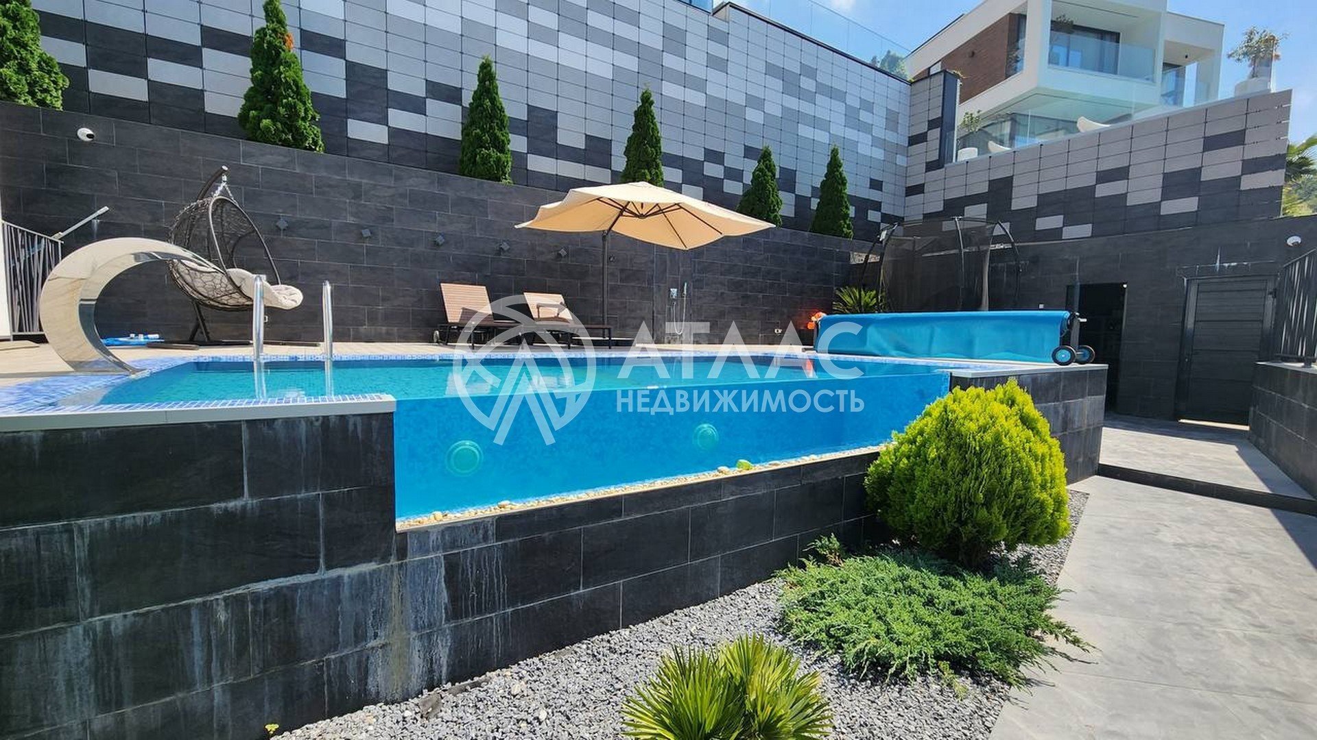 Инфинити-бассейн: Вас ждет бескрайний бассейн, находящийся на территории этого дома. Это идеальное место для расслабления, развлечений и поддержания хорошей физической формы.