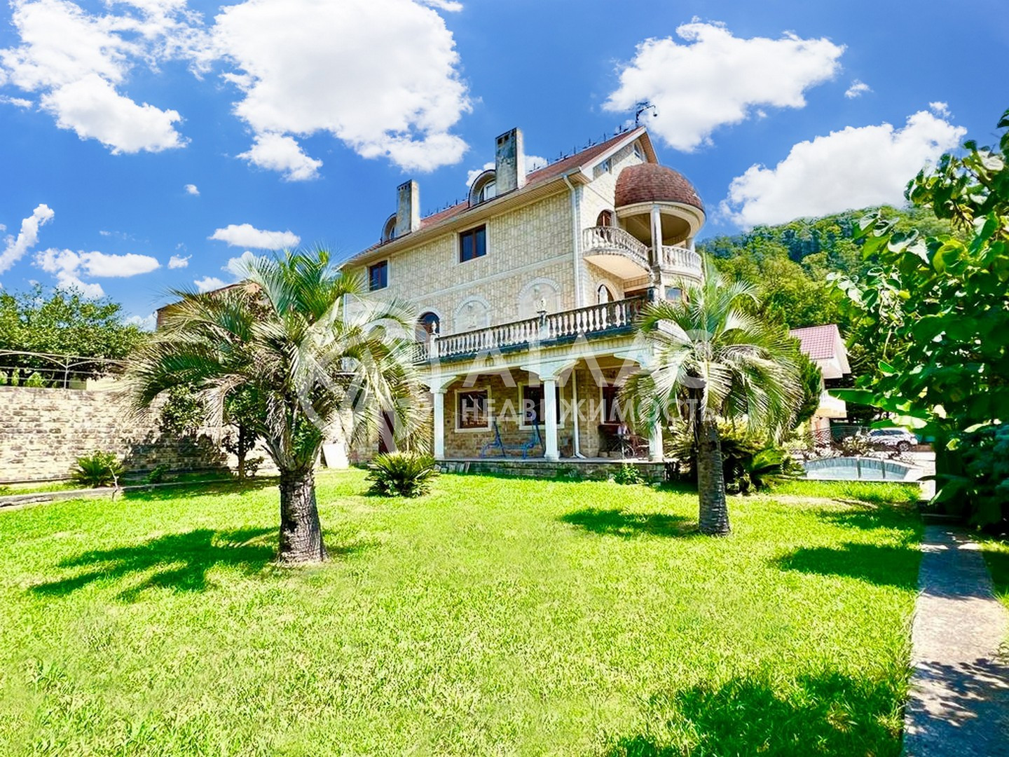 Продается особняк площадью 557кв.м. с видом на мацестинскую долину, расположенный в приватной локации для жизни. В отделке фасада использовался натуральный камень. Выполнен ремонт в классическом стиле, в большинстве помещений использовалась веницианская штукатурка и натуральное дерево. Мебель преимущественно итальянская Baldinini.