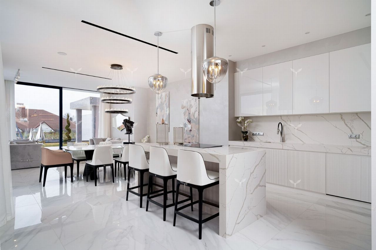Сам дом двухэтажный в современном стиле и с новым ремонтом, прожили в нем не больше полугода.