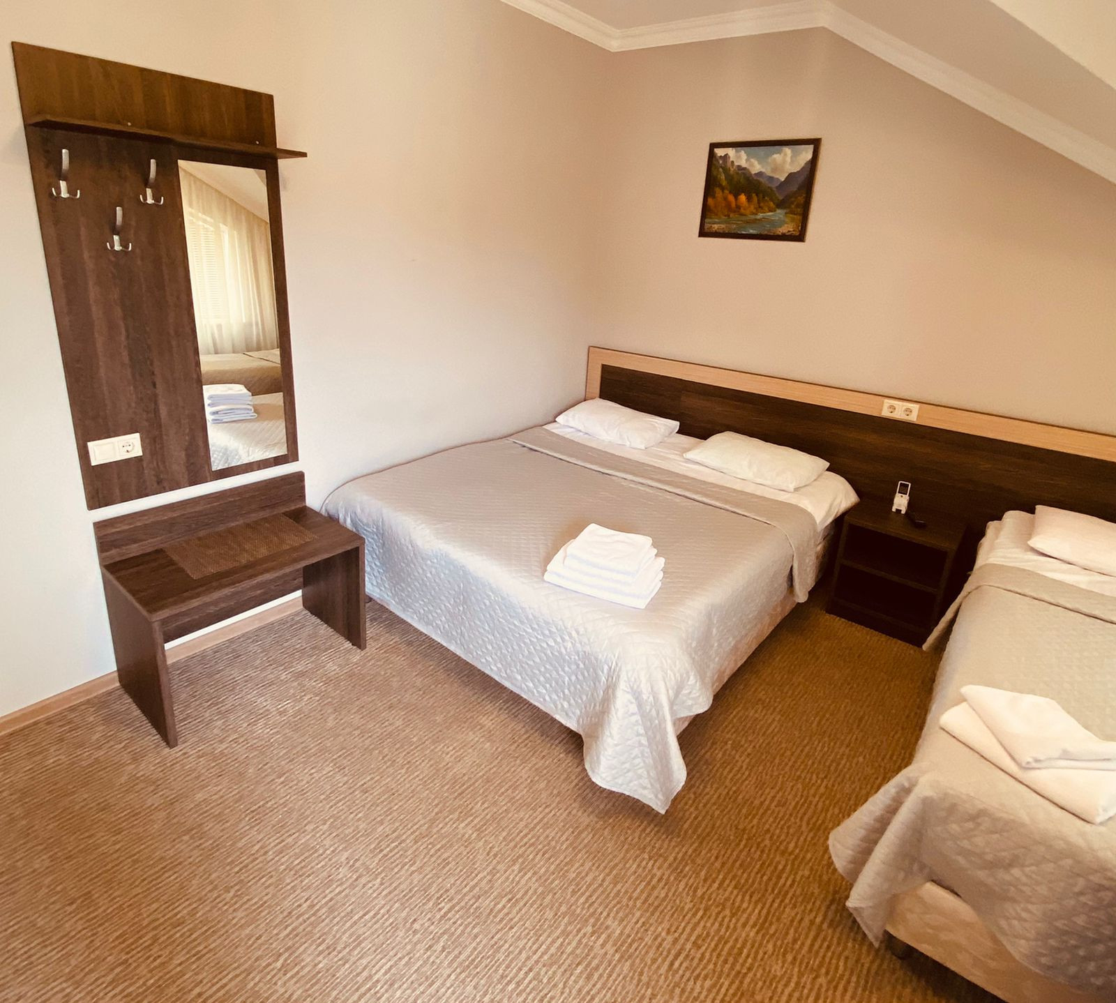 На втором и третьем этажах – 10 спальных комнат. Все комнаты оснащены сан. узлами, кондиционером, ТВ.