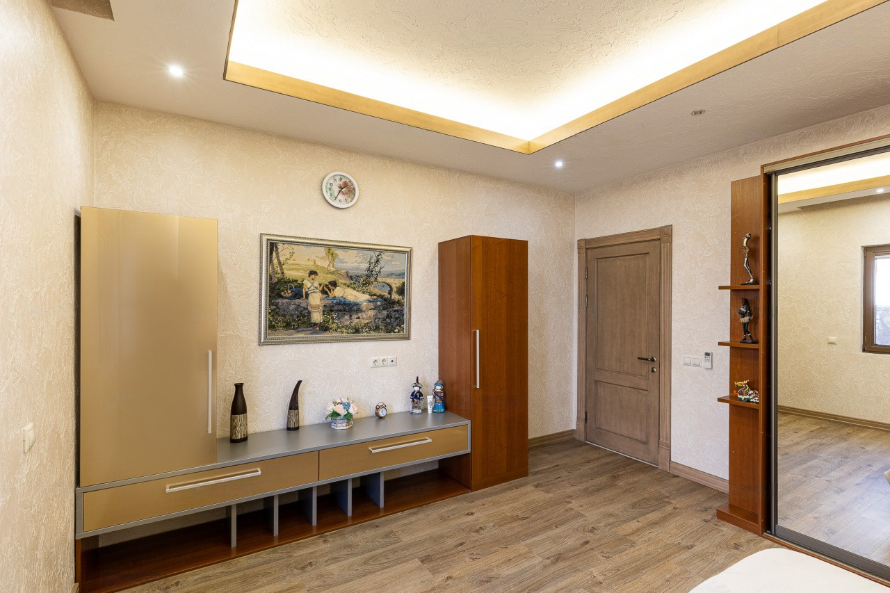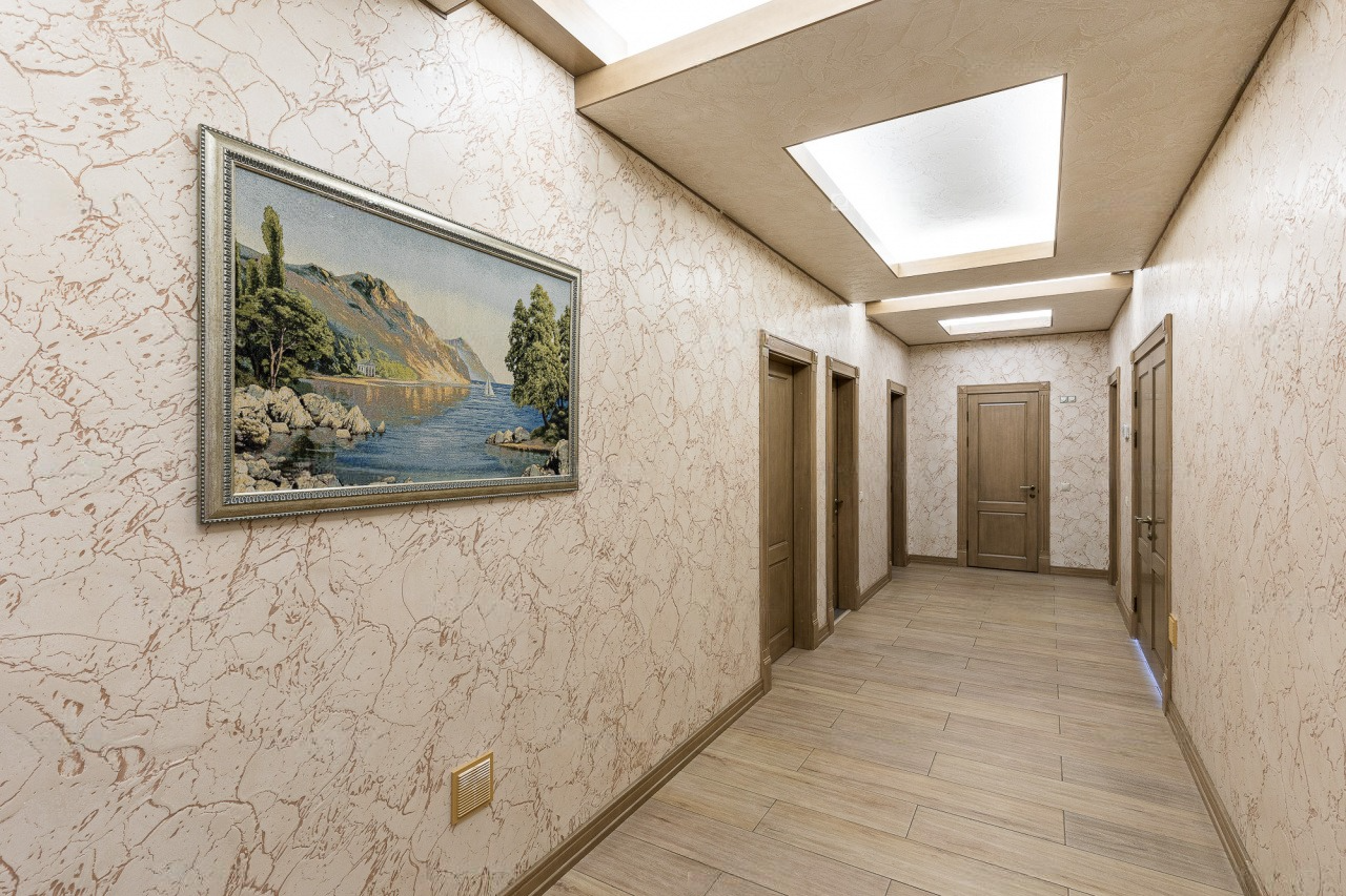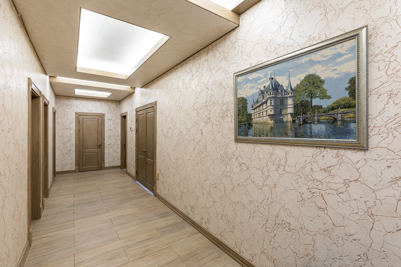 Невзирая на факт такого внушительного метража, пространство распланировано максимально функционально. Он отлично подходит для проживания больших семей, ценящих приватность пространства.