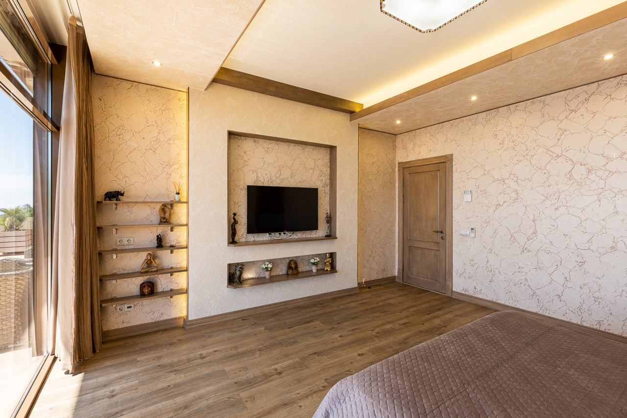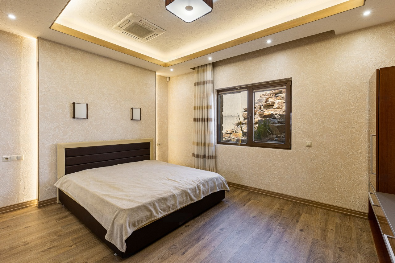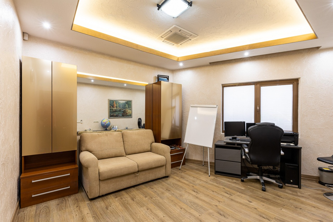 Невзирая на факт такого внушительного метража, пространство распланировано максимально функционально. Он отлично подходит для проживания больших семей, ценящих приватность пространства.