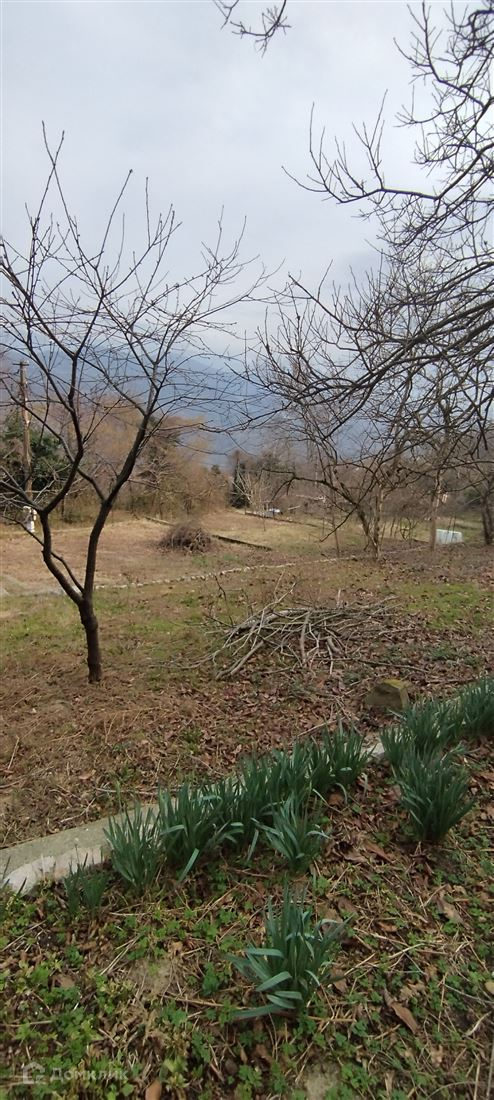 Плодоносящий сад яблоня, груша, вишня ,хурма,виноград ,клубника, фейхоа и несколько посаженных маленьких деревьев.
