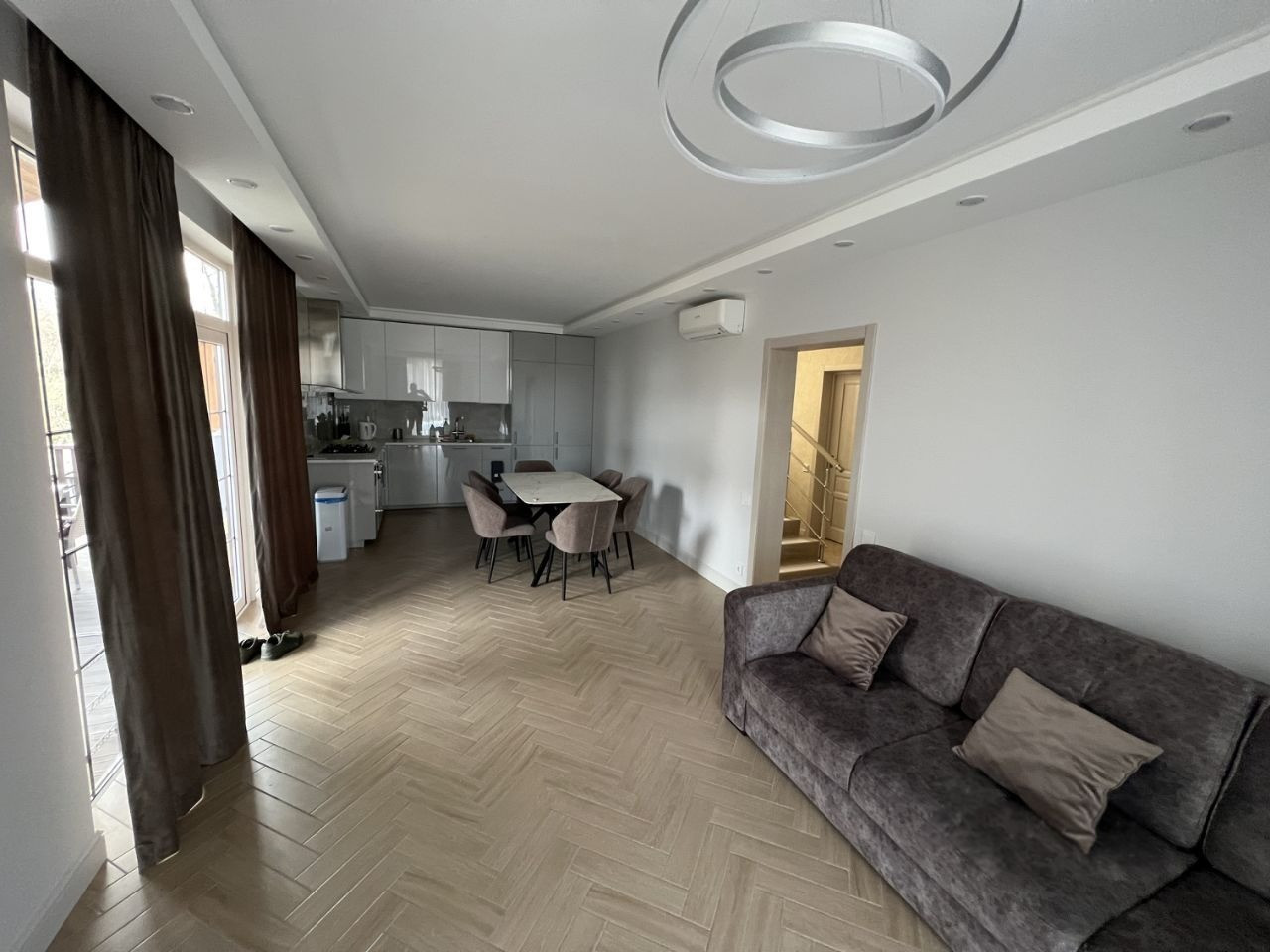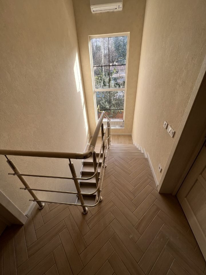 Дом трехэтажный общей площадью 256 м2, участок 6 соток ровный, все коммуникации центральные, в том числе газ, ремонт, оставляем всю мебель и технику.