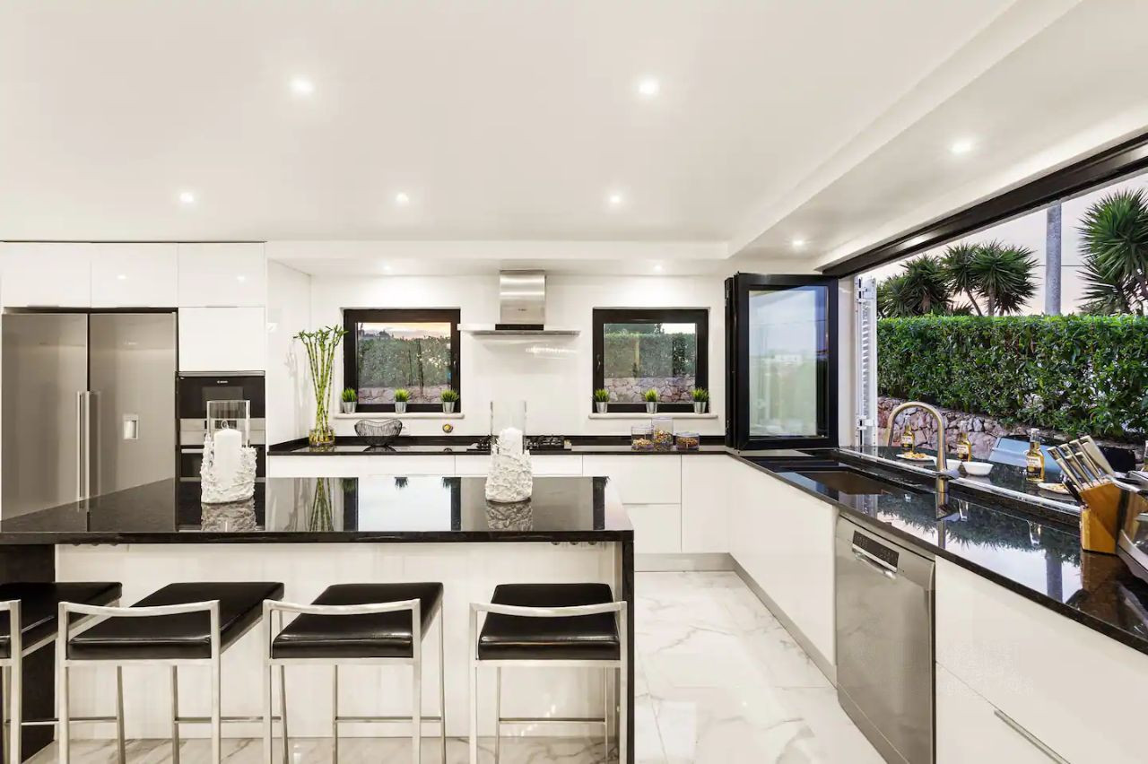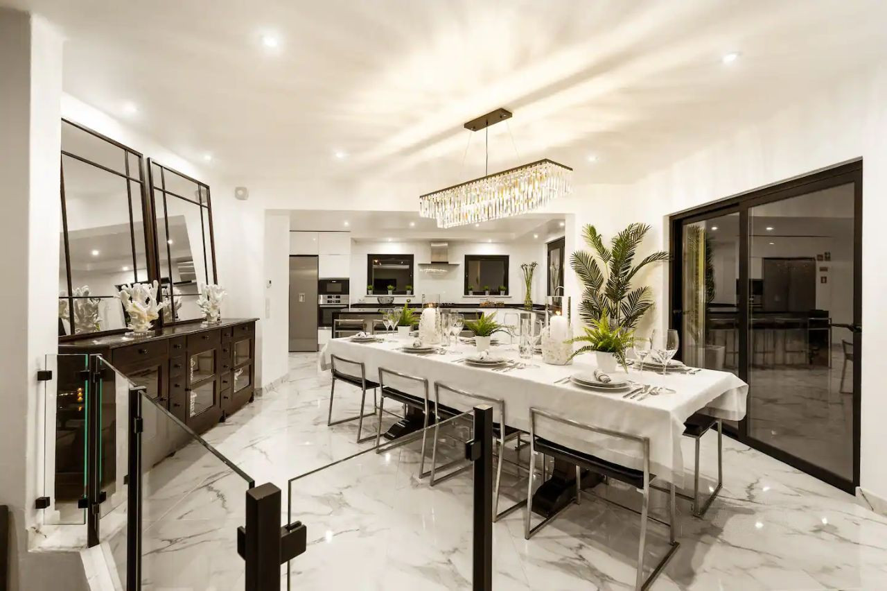 Дорогой ремонт выполнен известным дизайнером. Вся мебель и техника привезены на заказ из Германии. Мрамор, столы из дуба — всё самое роскошное для самодостаточного человека.