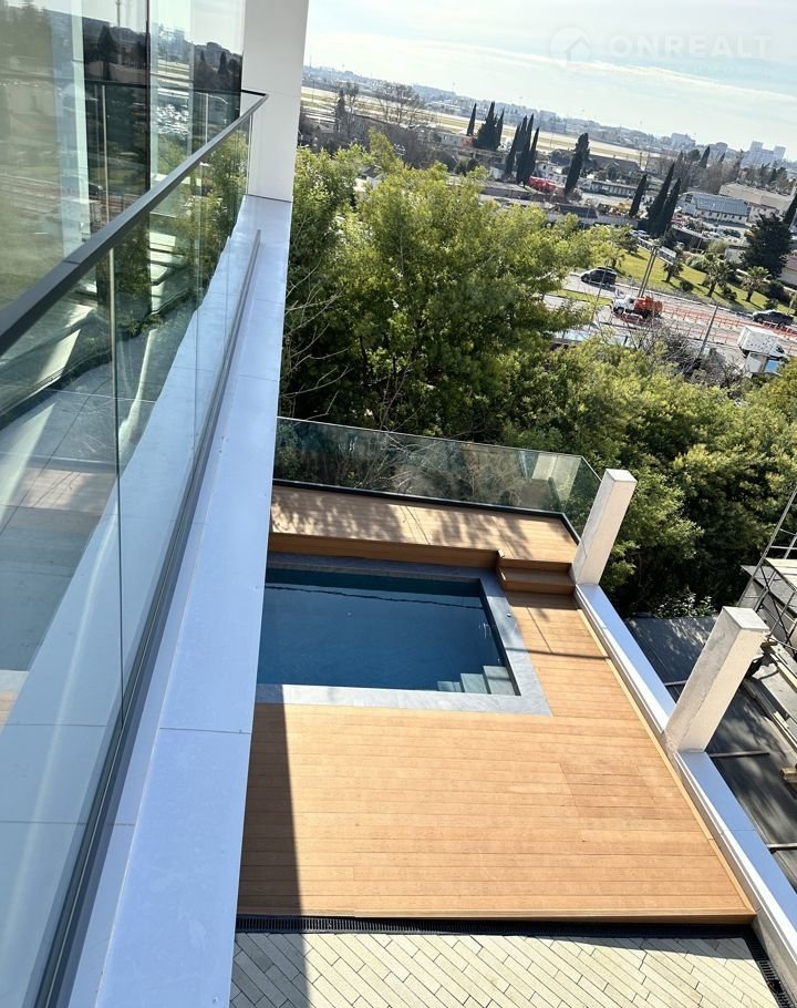 Все остекление в доме выполнено из Алюминия SСНUСО с пятью раздвижными системами! Участок полностью благоустроен, трава, кусты, брусчатка. У этого дома единственная во всем комплексе видовая терраса-смотровая, которая на пять метров возвышается над землей, имеет красивое стеклянное ограждение и самое главное шикарную панораму, которая открывается вашем взору.