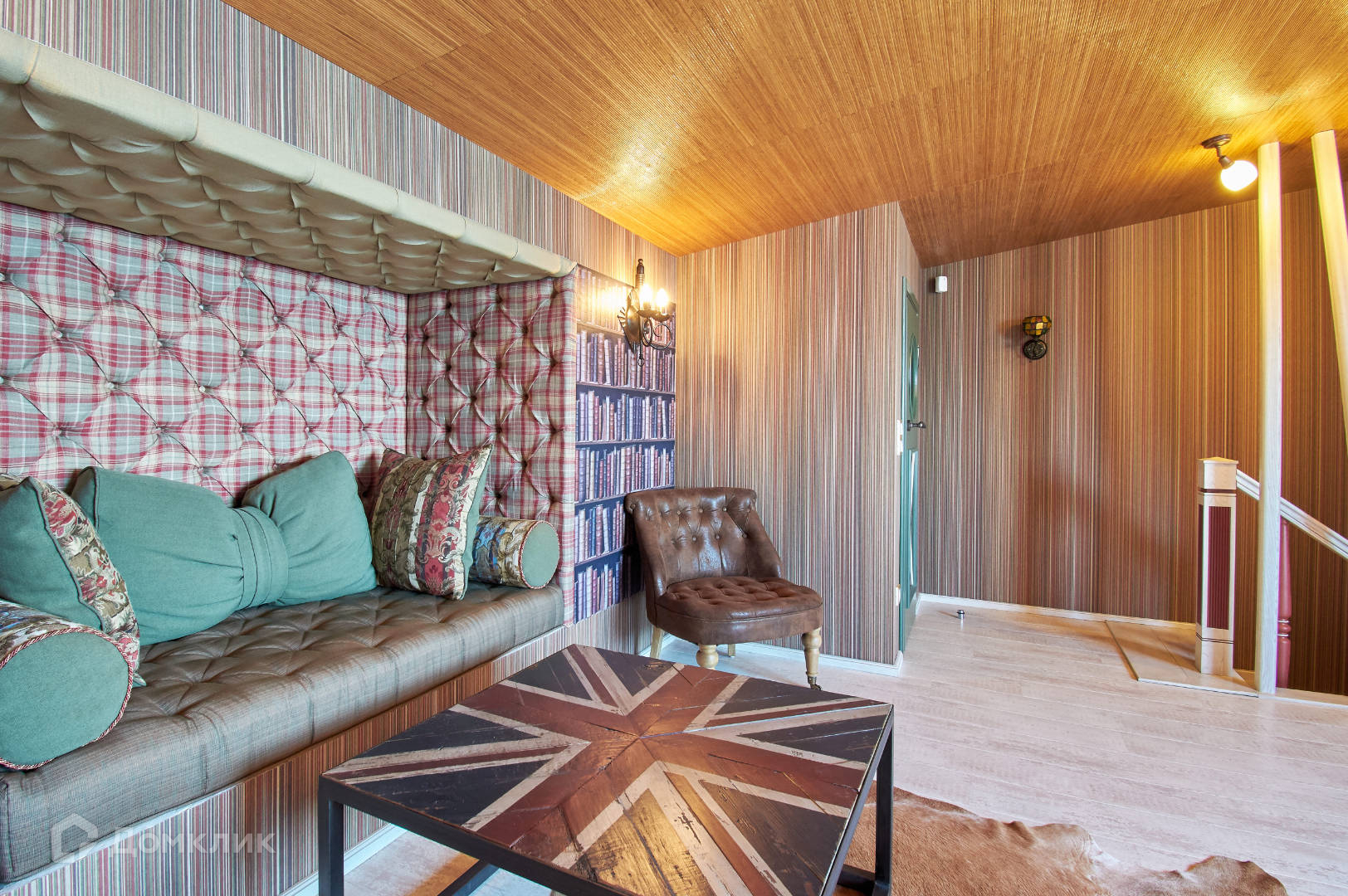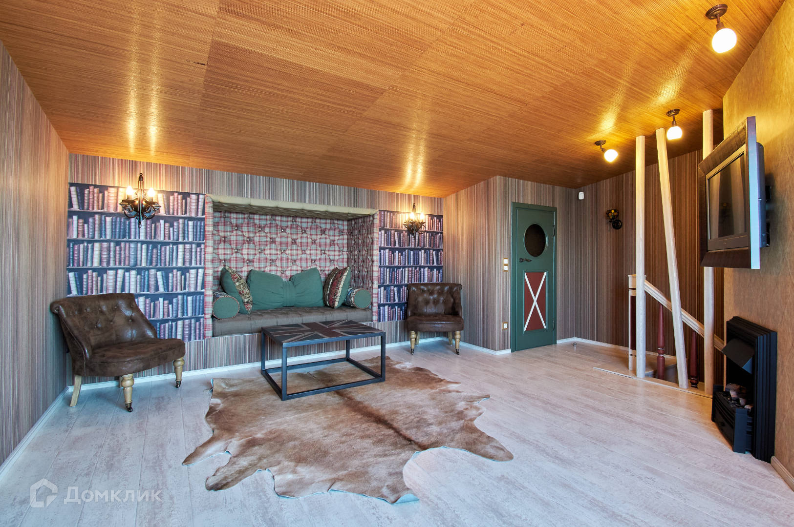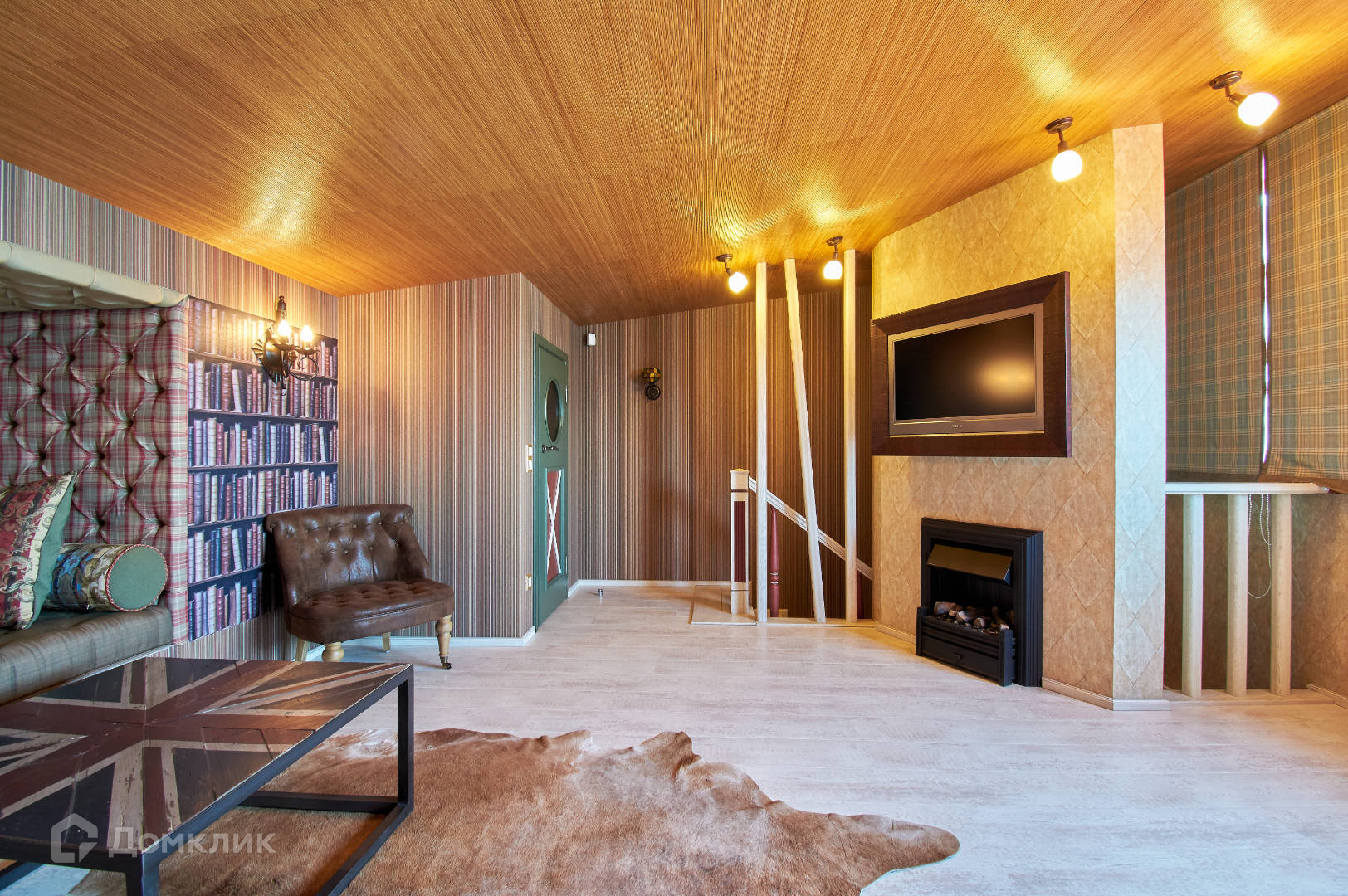На пятом - комната отдыха - каминный зал с библиотекой.