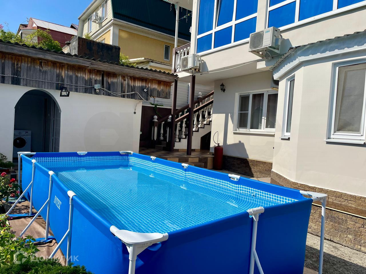Во дворе установлен бассейн.