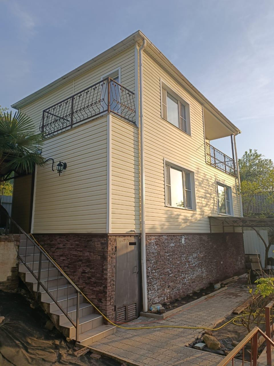 Дом для постоянного проживания в садовом ТСН Труд. Вода - скважина, канализация автономная. Электричество 23 кВт. Теплый пол на 1 этаже, электрообогреватели. В каждом помещении кондиционеры. Соседи проживают круглогодично. До моря всего лишь 10 минут на машине. Очень красивые, экологичные места, поблизости много достопримечательностей (Сероводородный источник, Агурские водопады, смотровая башня, дача Сталина, Поляна Высоцкого и многое другое). ТСН расположен по дороге на большой Ахун на границе с Национальным Сочинским парком (заповедная зона). Дом двухэтажный, на первом этаже расположена кухня-гостиная, санузел. На втором этаже две спальни (одна с лоджией, вторая с балконом) и санузел. На территории имеется навес для машины и навес для посиделок на улице.