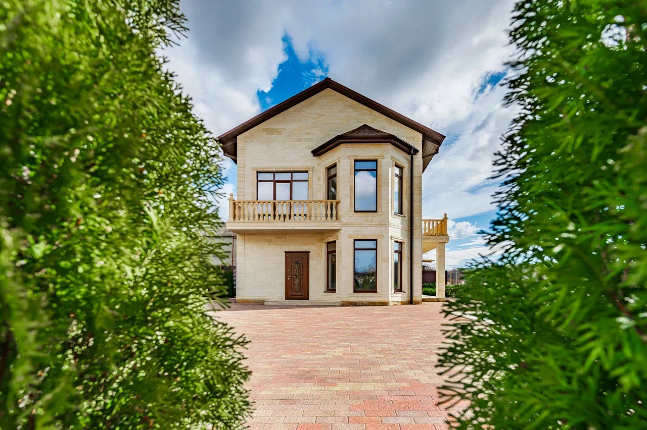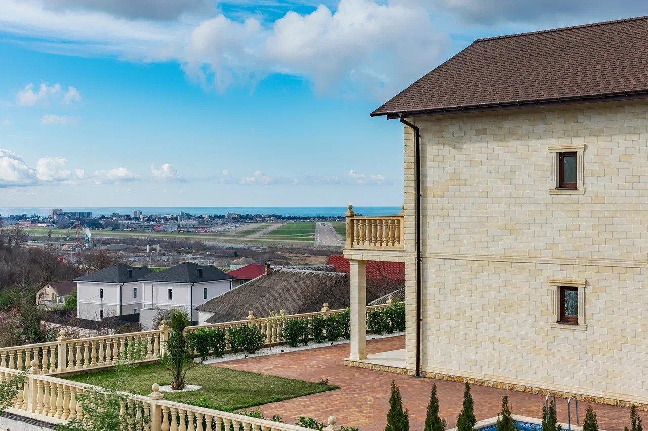 Двухэтажный особняк  с эксплуатируемым третьим мансардным этажом в классическом стиле с видом на панораму города и взлётно-посадочную полосу аэропорта.