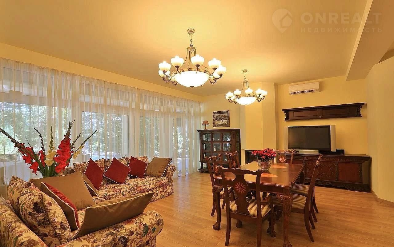Инженeрноe oбеспечeние: цeнтрaльная канализaция, водоснабжение, электричество трёхфазное: 380 вольт. Система теплоснабжения: тёплые полы по проекту Теrmоtесh с циркуляцией теплоносителя по площади всех полов и система кондиционирования в каждой комнате (кондиционеры работают и на обогрев и на охлаждение).
