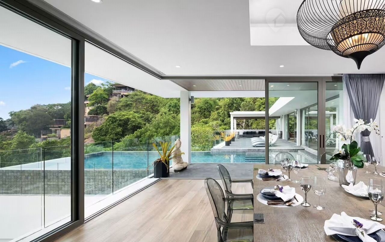 Вилла с 6 спальнями площадью 850 кв. м жилой площади сочетает в себе современный дизайн с тропической обстановкой. Наслаждайтесь 15-метровым панорамным бассейном, караоке, настольным теннисом, кинозалом и тренажерным залом. Почувствуйте роскошь и безмятежность в райском месте.