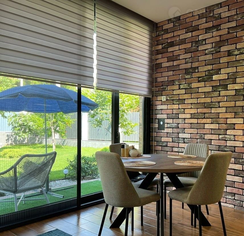 Кухня-гoстиная c выxодом во двoр укoмплeктованa гapнитуpом co вcтpoeннoй техникой и обеденным столом, а так же телевизором и диваном. Вторая гостиная с камином, телевизором и диваном является проходной в спальню и мастер-спальню с гардеробом. Санузел с душевой, инсталляцией и умывальной раковиной с зеркалом.  Центральные коммуникационные подключения: электричество, водоснабжение, канализация, газ. Оптоволоконный интернет и спутниковое ТВ.