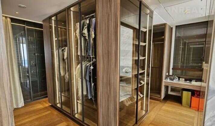 2 этаж: общий холл, три спальни, три ванные комнаты, в главной спальне великолепная гардеробная. Дом оборудован системой умный дом и подогревом полов во всем доме.