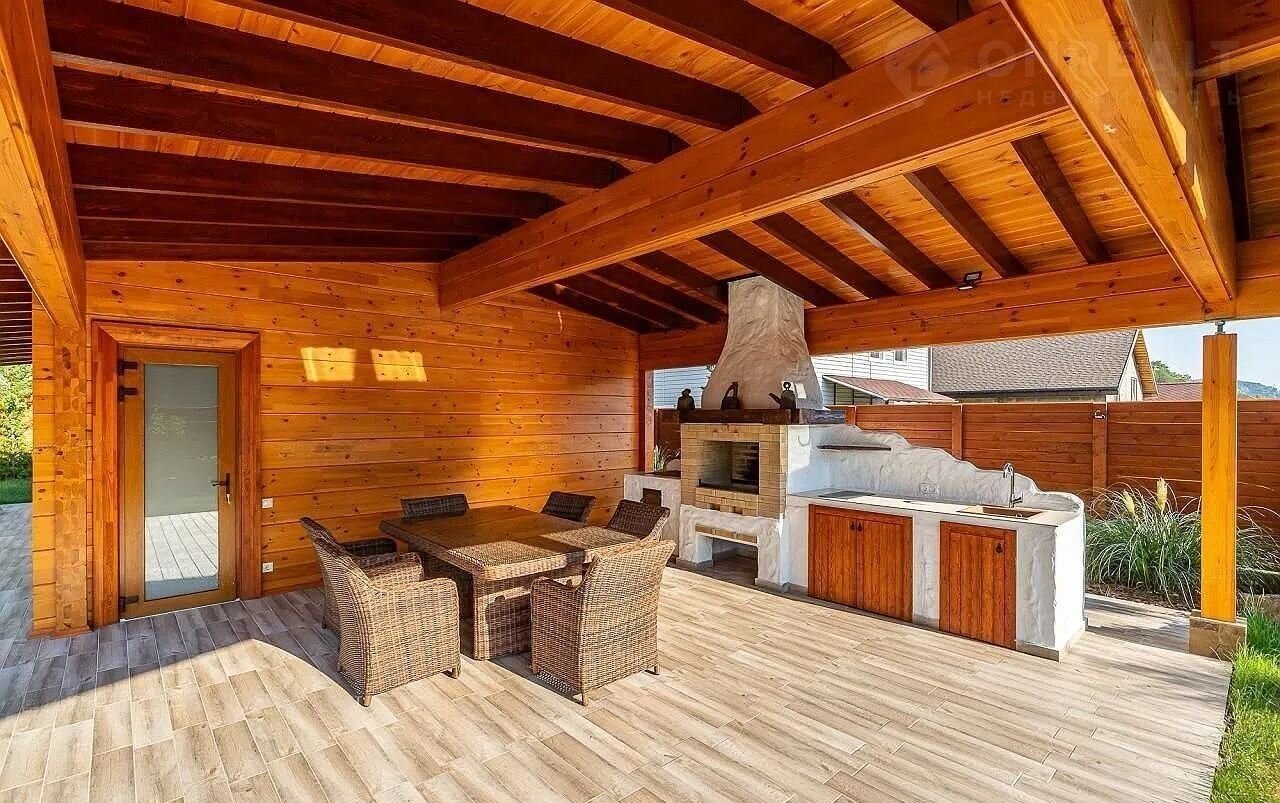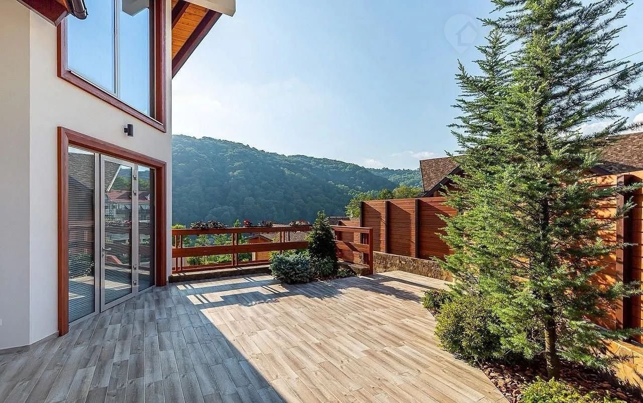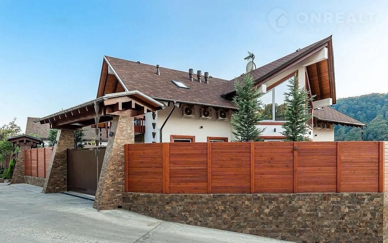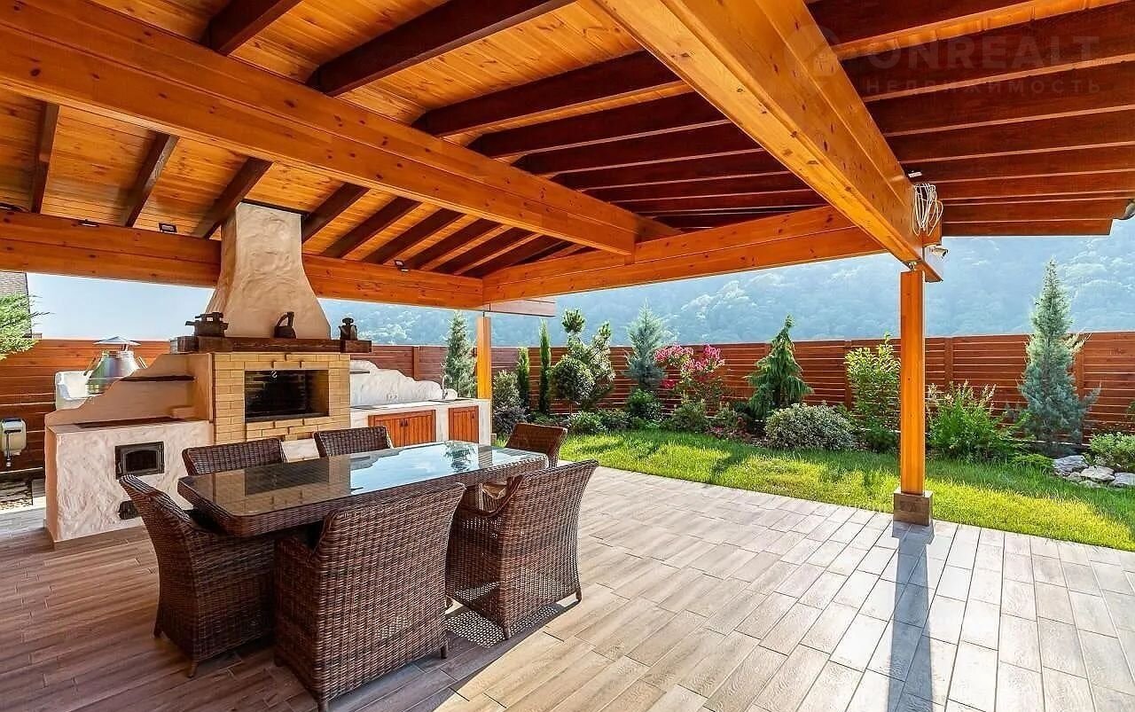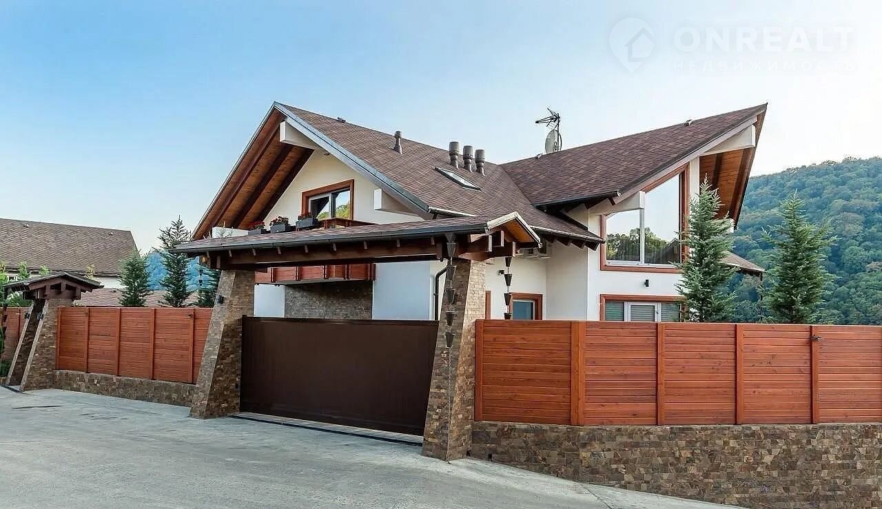 Но настоящая жемчужина этого дома – огромная терраса, где вас ждет собственный бассейн, утопающий в зелени.  Здесь, среди цветов и  уютных уголков,  можно наслаждаться отдыхом на свежем воздухе, любуясь красотой горных вершин. Зона барбекю, идеально оборудованная для незабываемых вечеров, и уютная баня добавят особый колорит вашей жизни.  Всё продумано до мелочей – здесь сочетаются роскошь, комфорт и умиротворение.